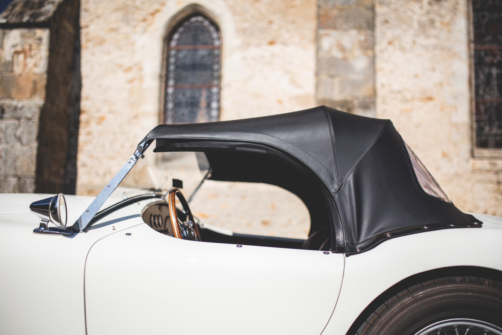 Nous avons intégralement refait le capotage de cette AC Bristol, pour cela nous avons pus sourcer le fabricant de toile spécifique à la marque. En plus de la capote nous avons également taillé sur-mesure le couvre tonneau et restauré les sides screen.