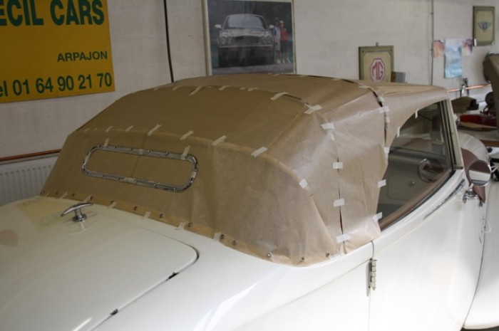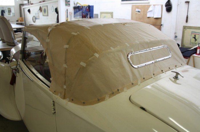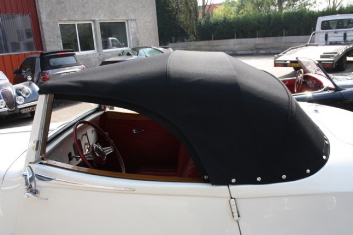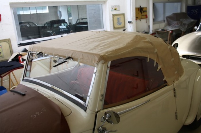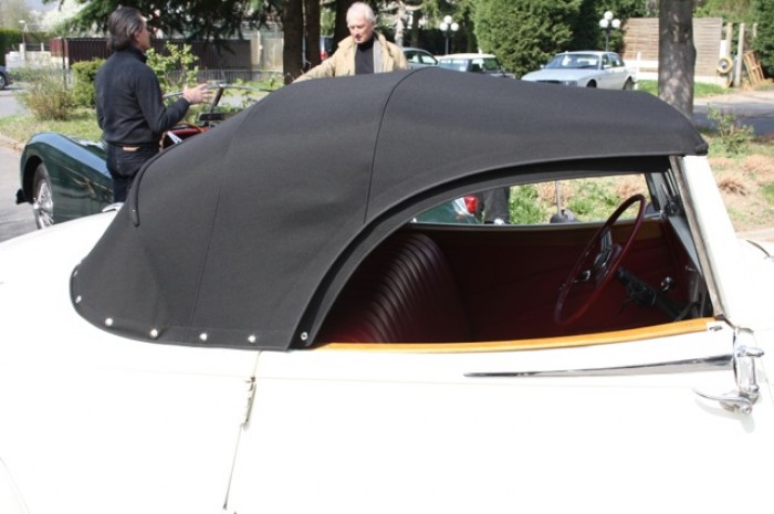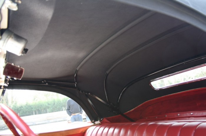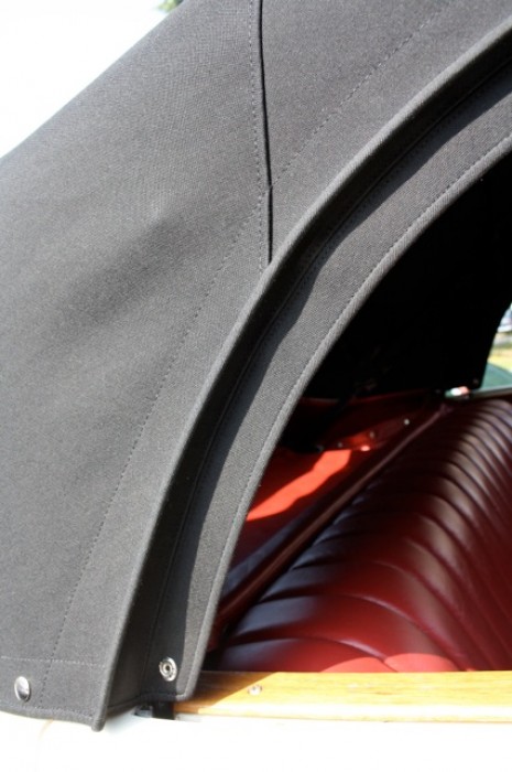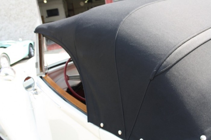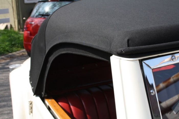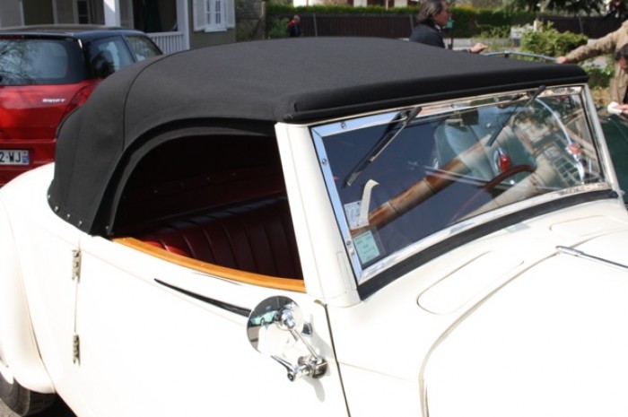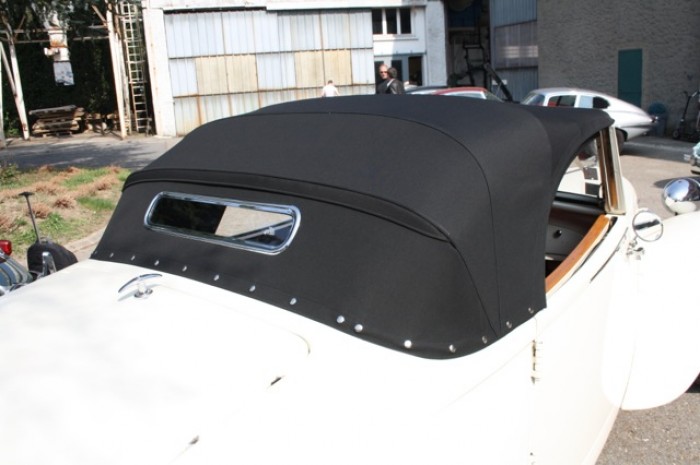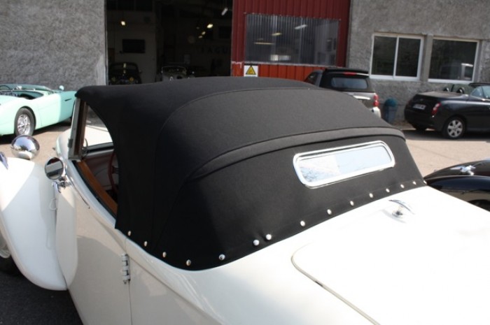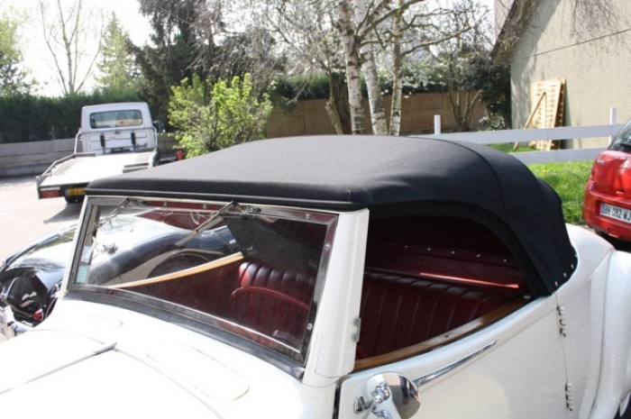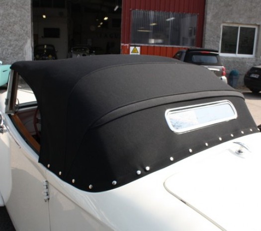 Capote en alpaga taillée sur mesure dans nos ateliers pour cette Citroën Traction.