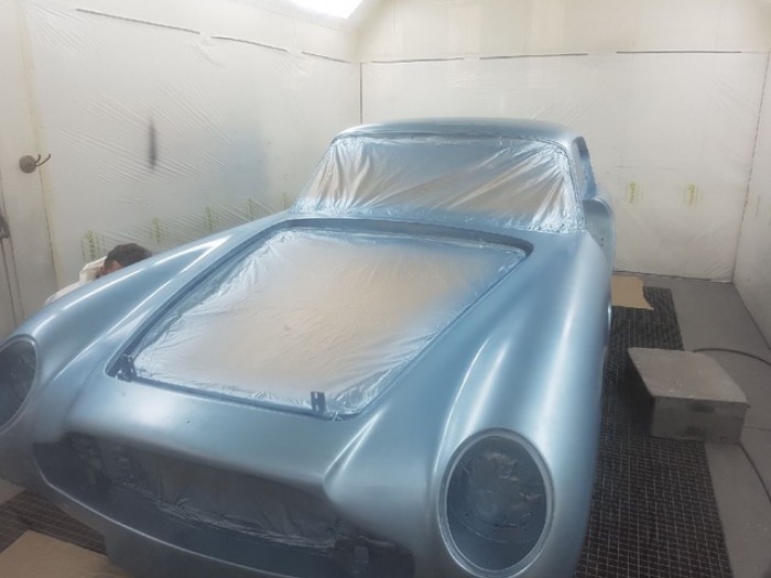 Mise à nue de la carrosserie pour une préparation peinture de cette Aston Martin DB6