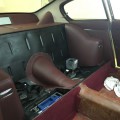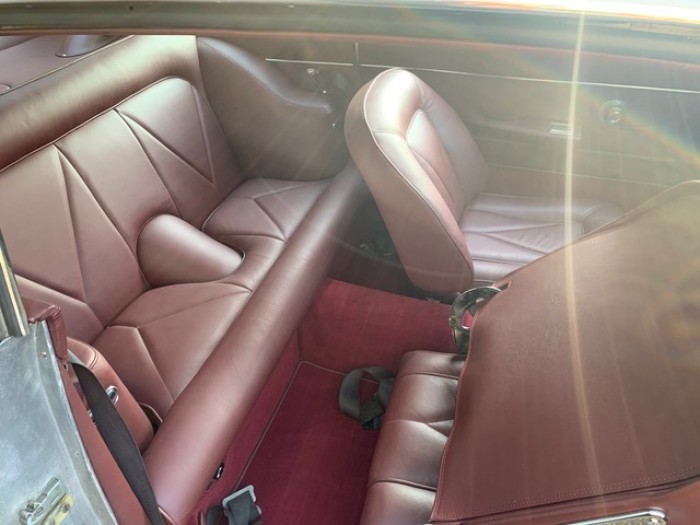 Panneaux de portes, sièges, console centrale en cuir pleine fleur, confection d'un jeu de moquette sur mesure et isolation complète de l'intérieur contre la chaleur, ciel de toit.