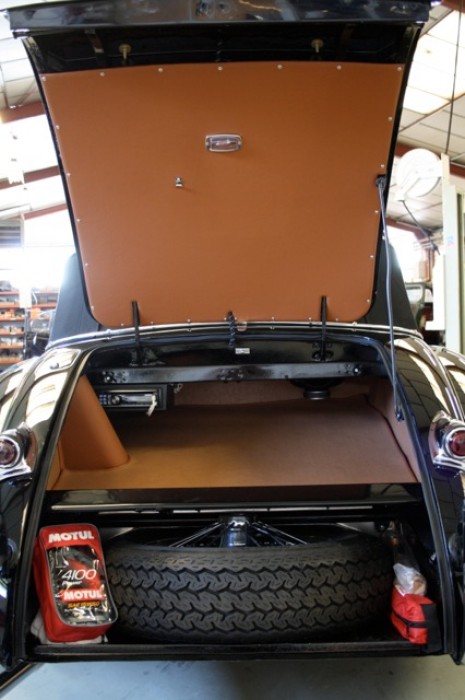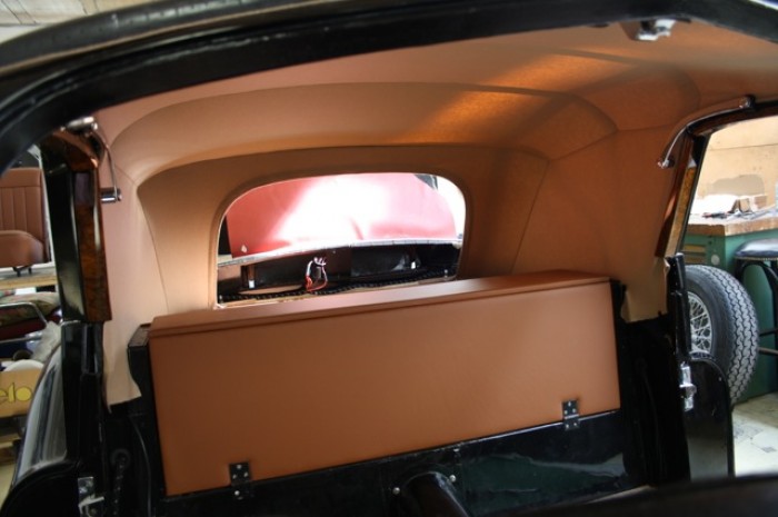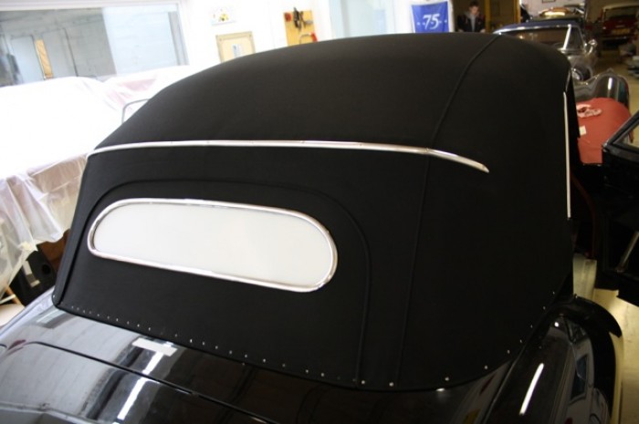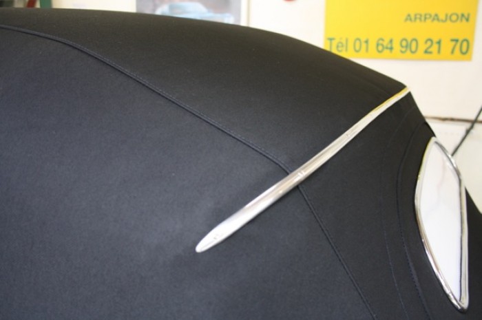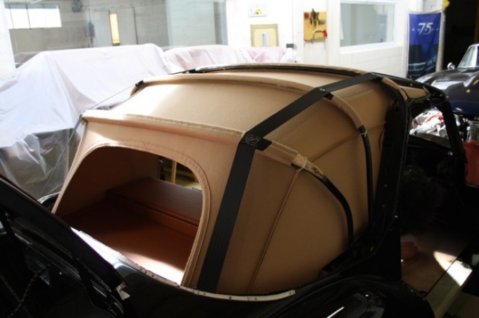 Capote en alpaga taillée sur mesure dans nos ateliers pour cette Jaguar.