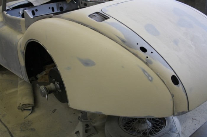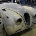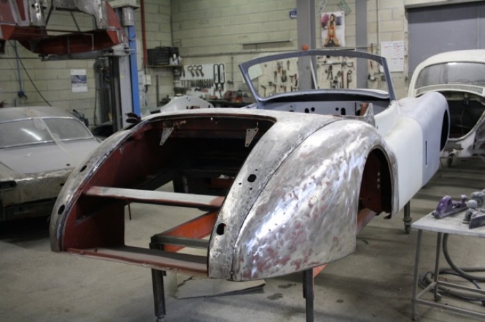 Restauration intégrale de cette Jaguar XK 120 cabriolet dans nos ateliers.