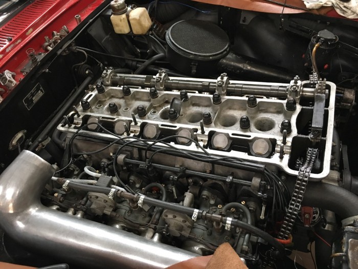 Préparation d'un moteur d'Alfa Romeo 2600 coupé.