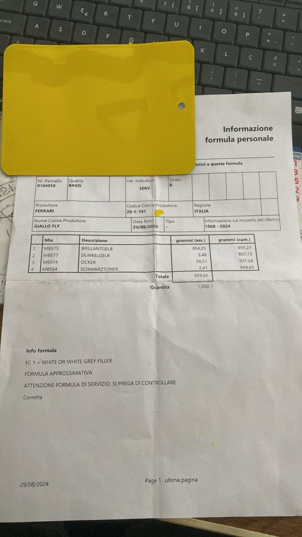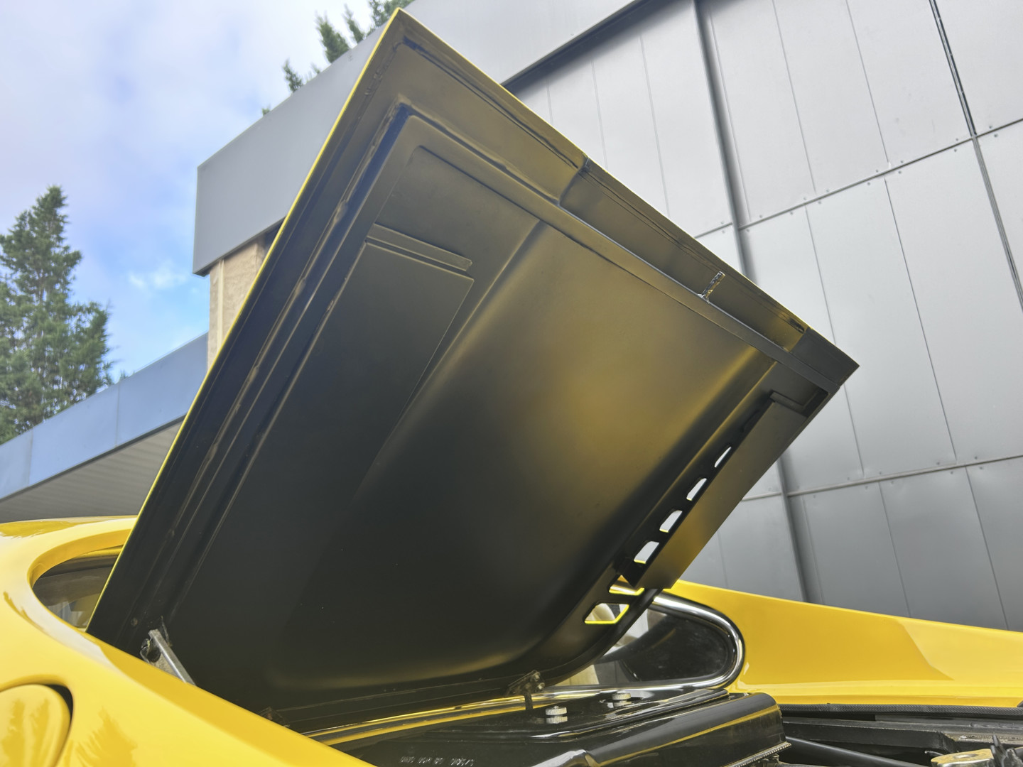 Nous avons décapé la caisse dans son intégralité afin de garantir un résultat impeccable. Nous avons sélectionné la teinte Giallo Fly d’origine après avoir obtenu la confirmation officielle de Ferrari.