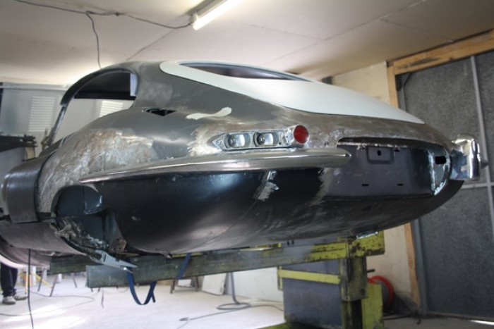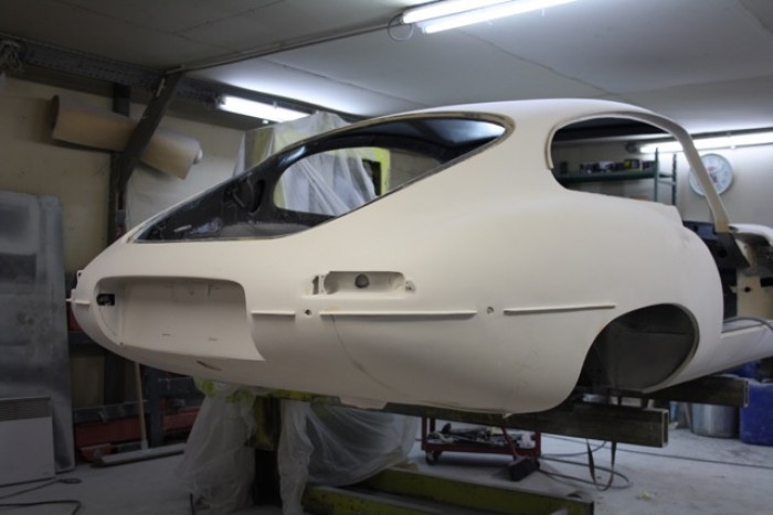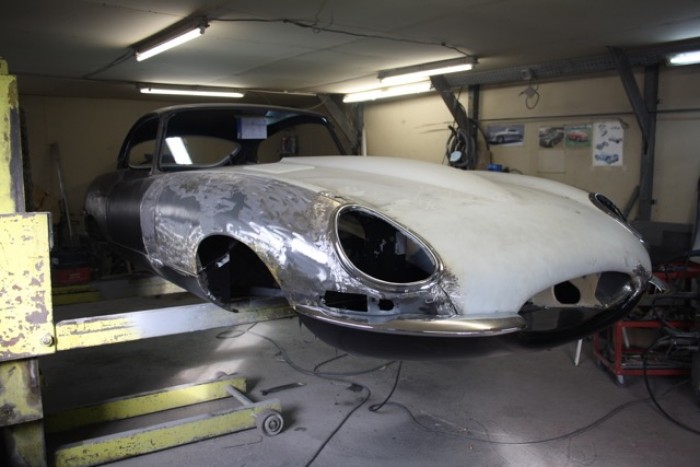 Restauration complète de cette Jaguar Type E coupé 4,2L sur commande de notre client.