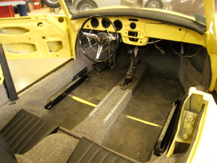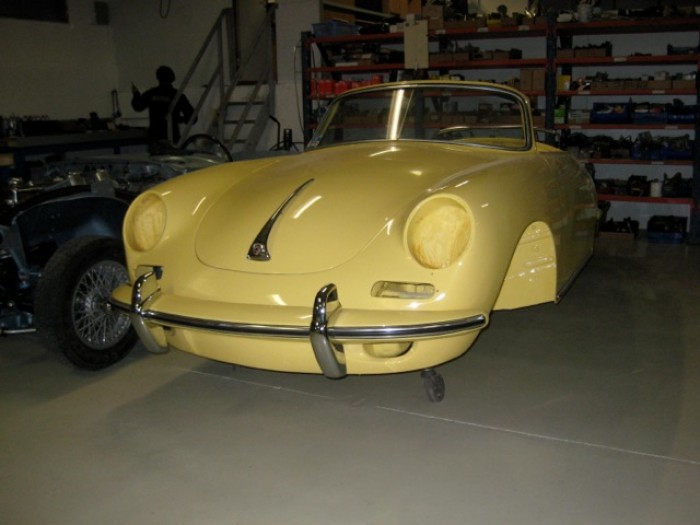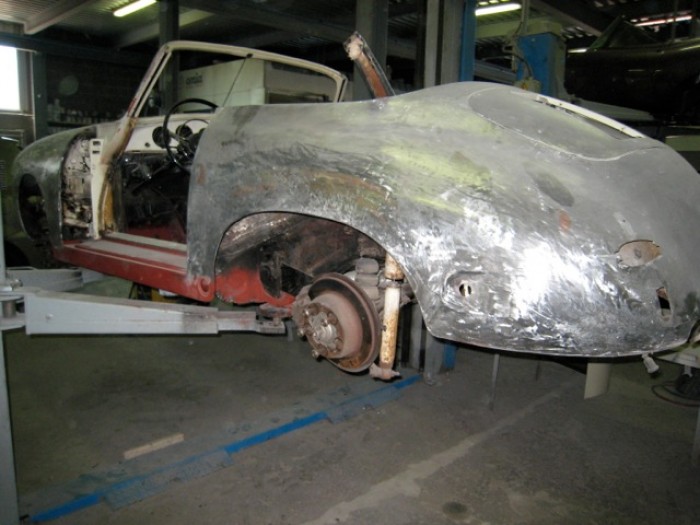 Porsche 356C en restauration complète (mécanique, carroserie, sellerie) dans nos ateliers.