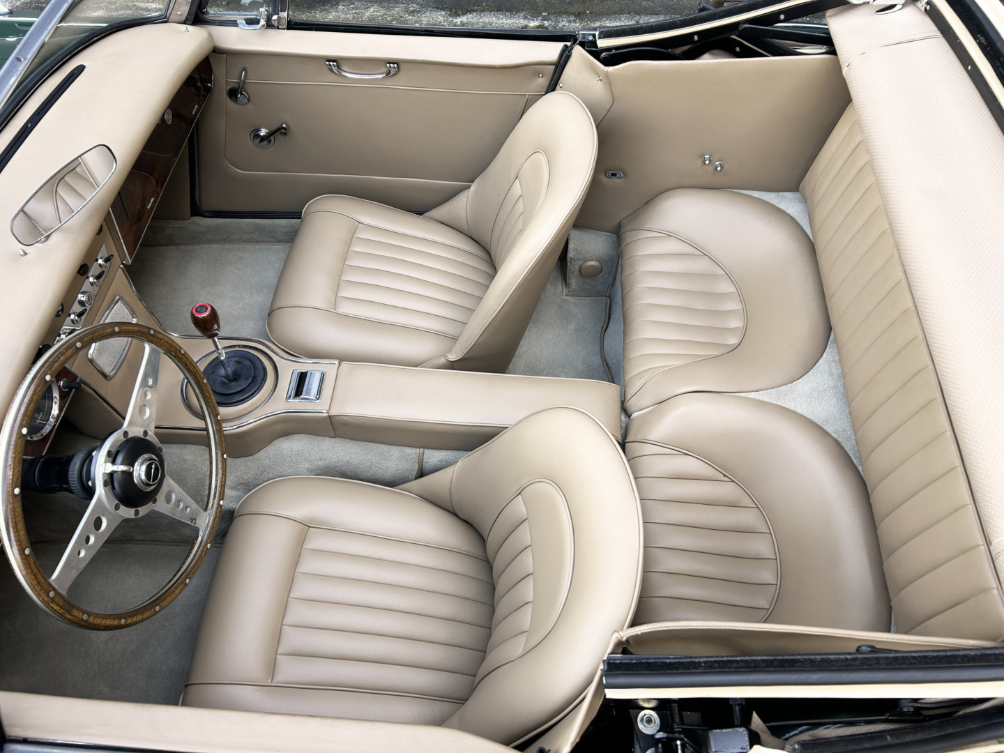 Nous avons entièrement restauré l’intérieur de cette Austin Healey 3000 MKIII, nécessitant des heures de travail minutieux pour retrouver son éclat d’origine. Chaque détail a été traité avec soin : de la moquette aux châssis de sièges, en passant par les panneaux. Nous avons réparé ou remplacé tous les éléments nécessaires dans notre atelier de sellerie, garantissant une qualité optimale.