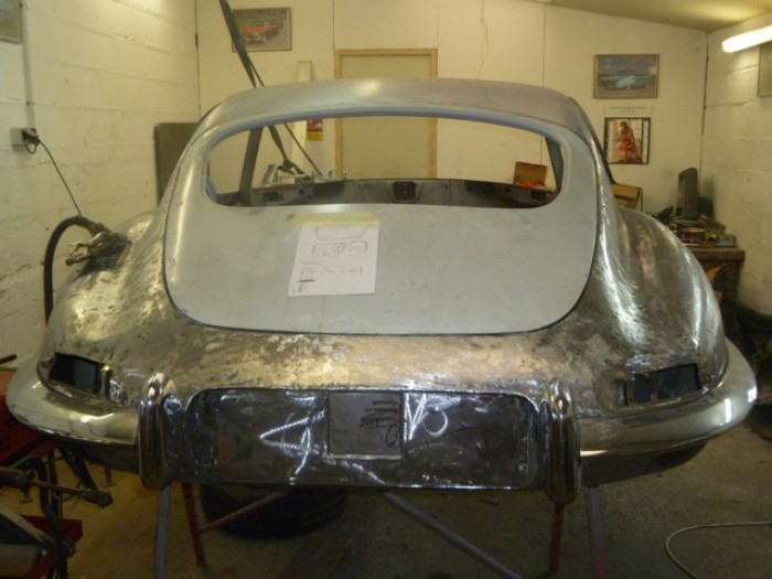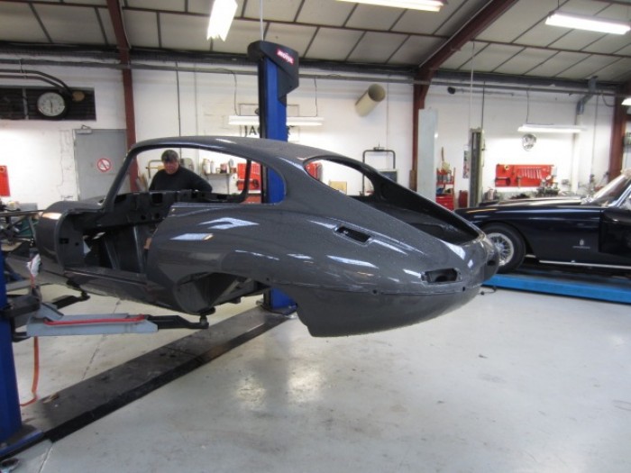 Restauration complète de cette Jaguar Type E 3,8L sur commande de notre client.