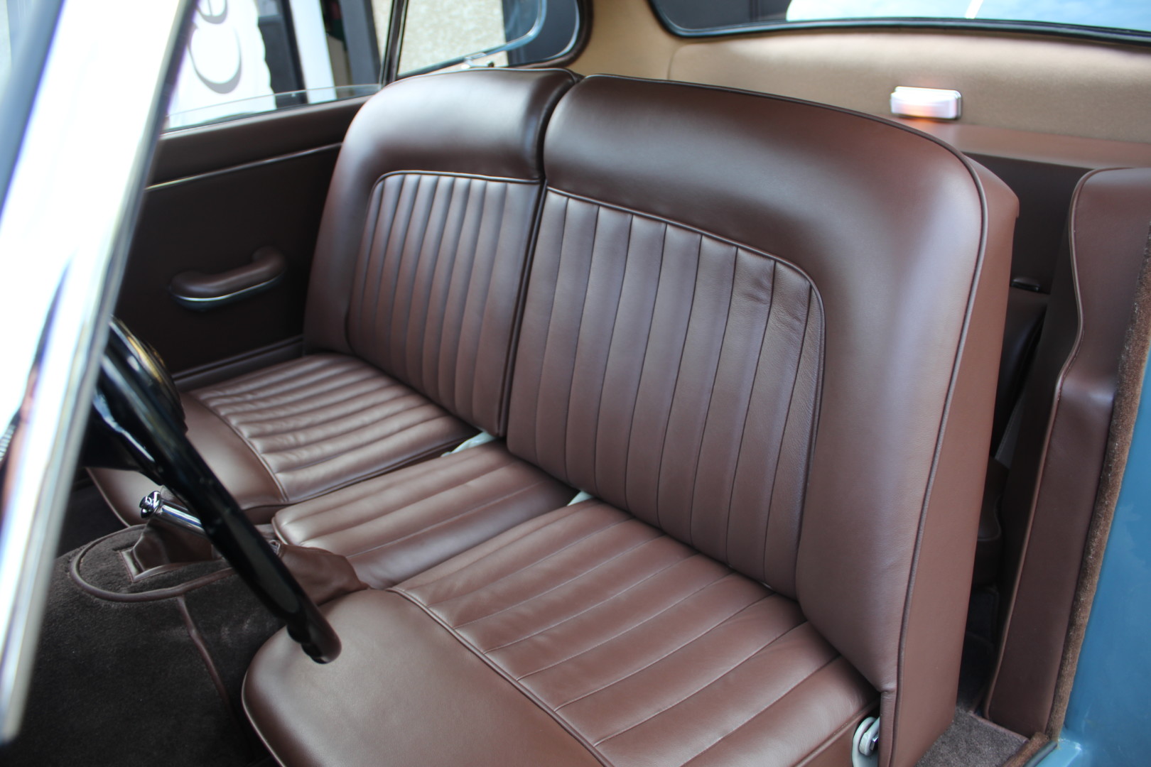 Nous avons entièrement mis à nu la carrosserie. Les ouvrants sont ajustés avec précision. Enfin, nous avons appliqué une superbe peinture “Blue Indigo” qui met en valeur ses lignes élégantes.