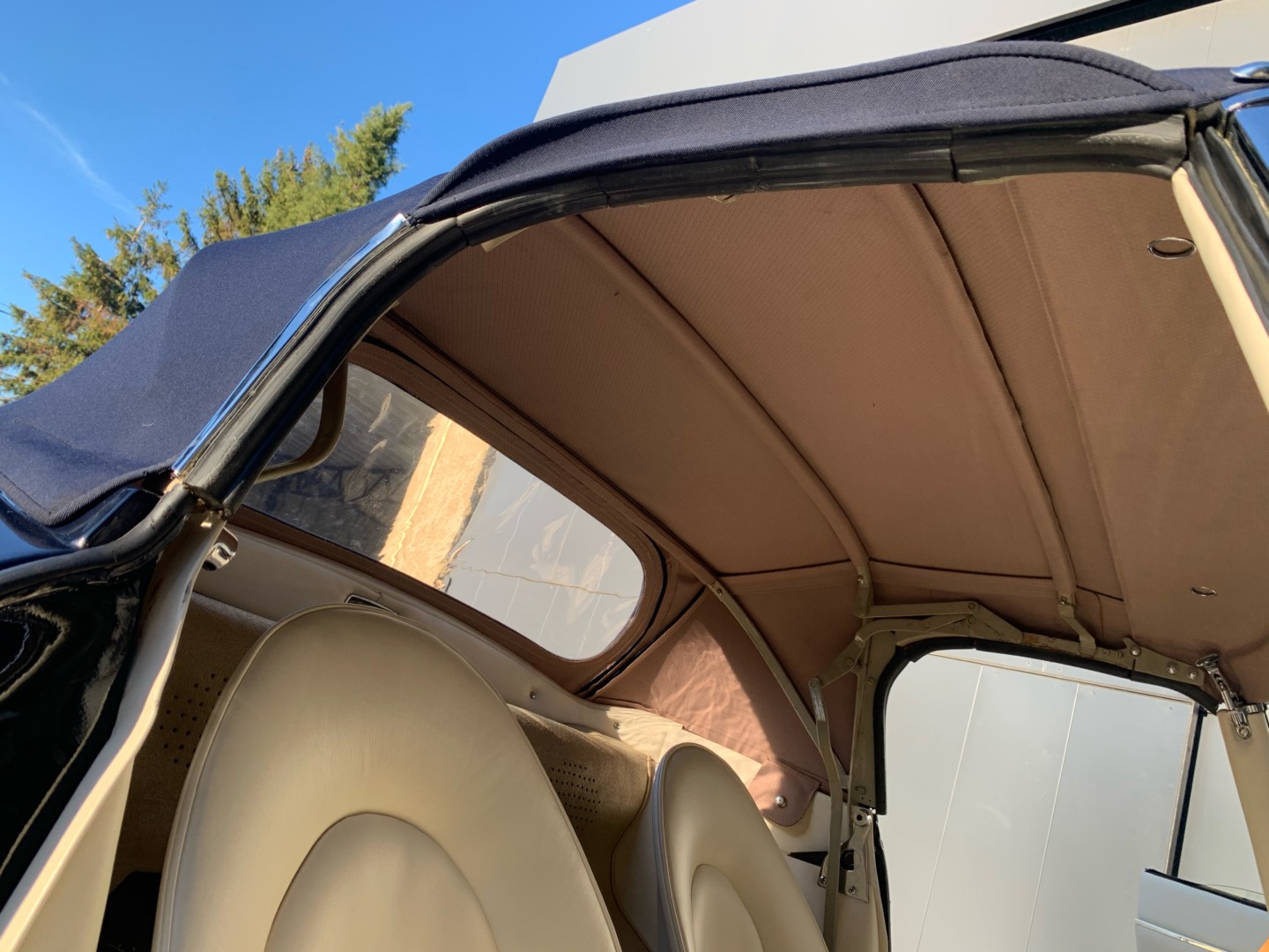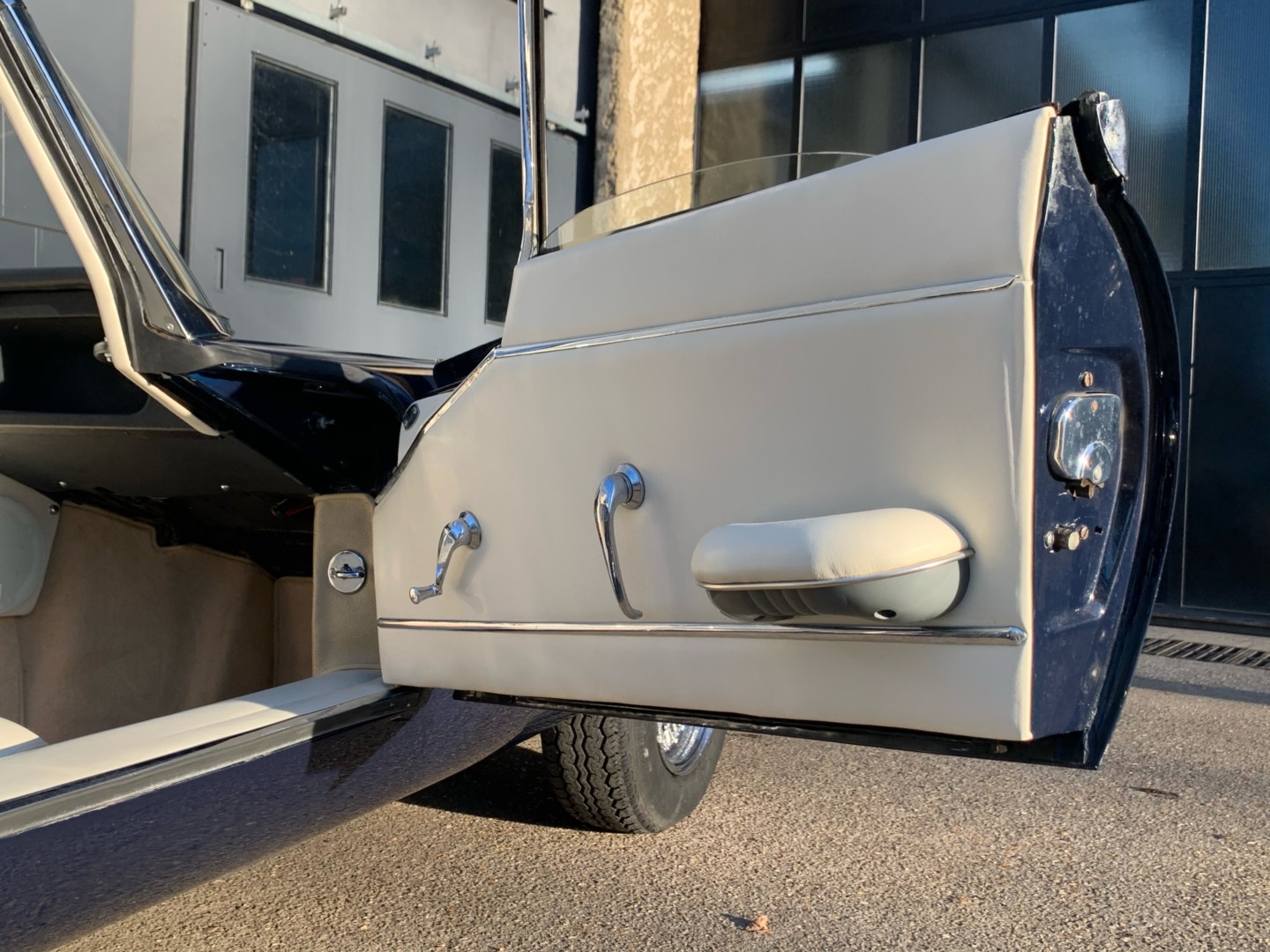 Capotage en alpagua bleu marine et couvre capote en cuir.