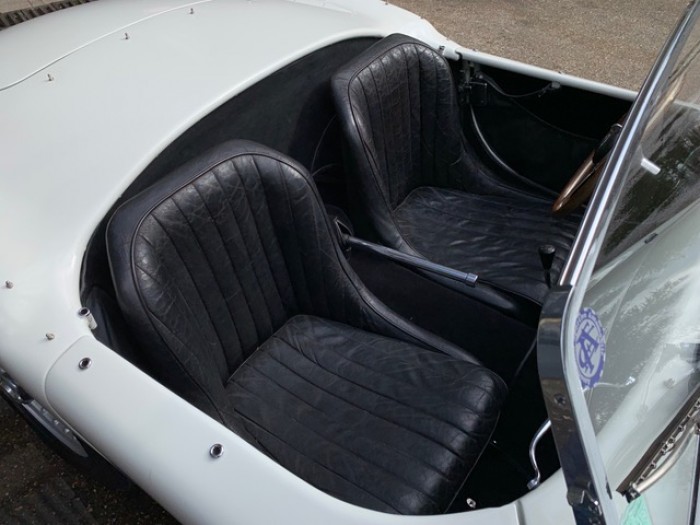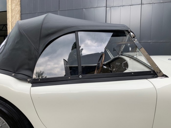 Elle possède sa magnifique sellerie d’origine en cuir noir. Son capotage complet à été restauré dans le simili d’origine.