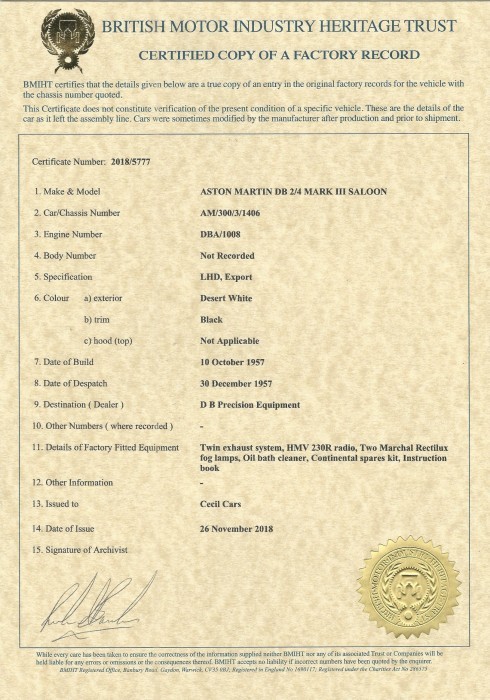 Un chirurgien grec achète cette Aston Martin DB2/4 MkIII, en conduite à gauche d’origine, puis l’emmène avec lui en Afrique du Sud. C’est là que le propriétaire suivant, un Sud-Africain, l’acquiert en 1993. Il ramène ensuite cette Aston Martin en Europe et la fait entièrement restaurer en Angleterre.