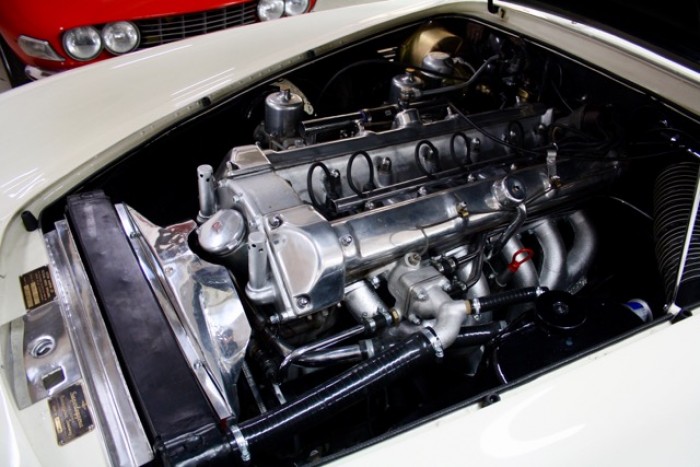 Le capot de la DB4 cache un six cylindres en ligne double arbre en aluminium. Conçue par Tadek Marek, cette mécanique archibritannique présente une ressemblance frappante avec le six cylindres Jaguar XK. Super carré (92 x 92 millimètres), ce groupe de 3 670 cm3 développe, avec deux carburateurs SU HD8, une puissance de 240 chevaux à 5 500 tr/min. Il offre à l’Aston Martin DB4 225 km/h et le 0 à 100 km/h en 9 secondes. Il est accouplé à une boîte David Brown à quatre vitesses. Le train arrière est constitué d’un essieu rigide, avec jambes de force et barre de Watt. Le freinage est assuré par des disques Girling sur les quatre roues.