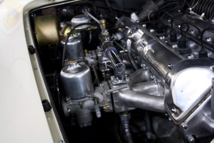 Elle possède une excellente carrosserie très saine, intégralement mise à nue dans nos atelier pour être peinte dans sa couleur d'origine Desert White.