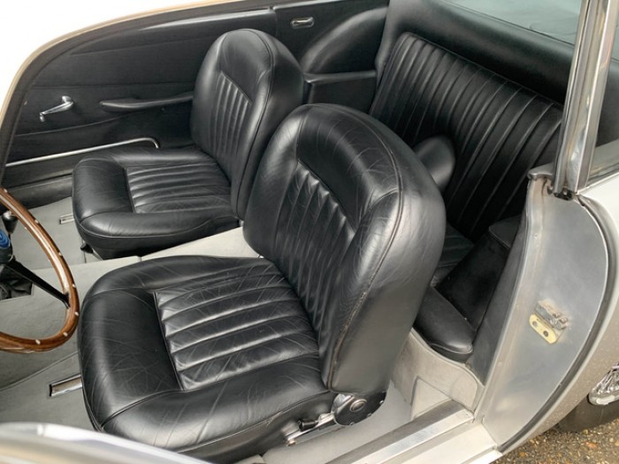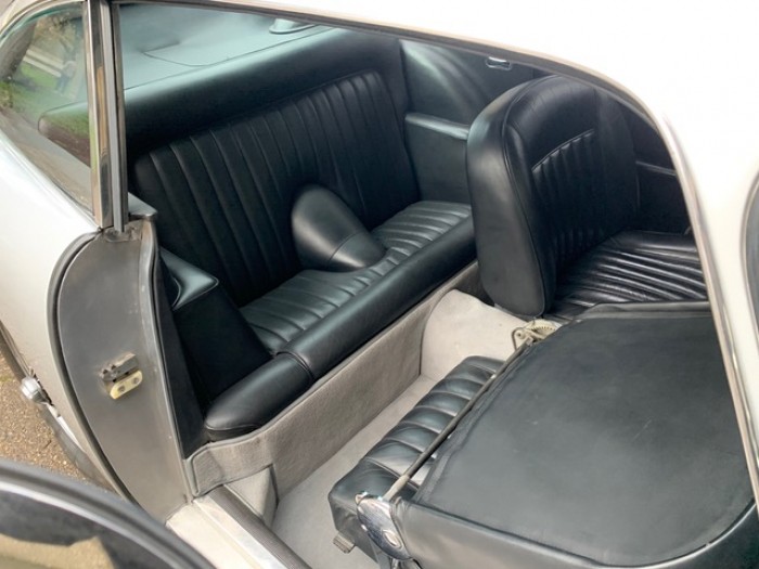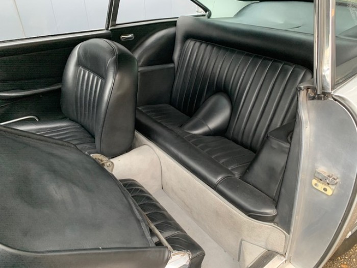 Elle est équipée de sa sellerie en cuir Connolly noir depuis le deuxième propriétaire, toujours en parfait état avec une légère patine. Ses moquettes grises sont neuves.