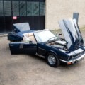 La V8 Volante reprend la ligne tendue et musclée de la V8 Coupé, signée William Towns, tout en y ajoutant une capote en toile parfaitement intégrée. Le dessin reste sobre, équilibré et intemporel, avec une présence sur route immédiatement reconnaissable.