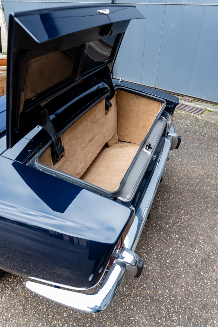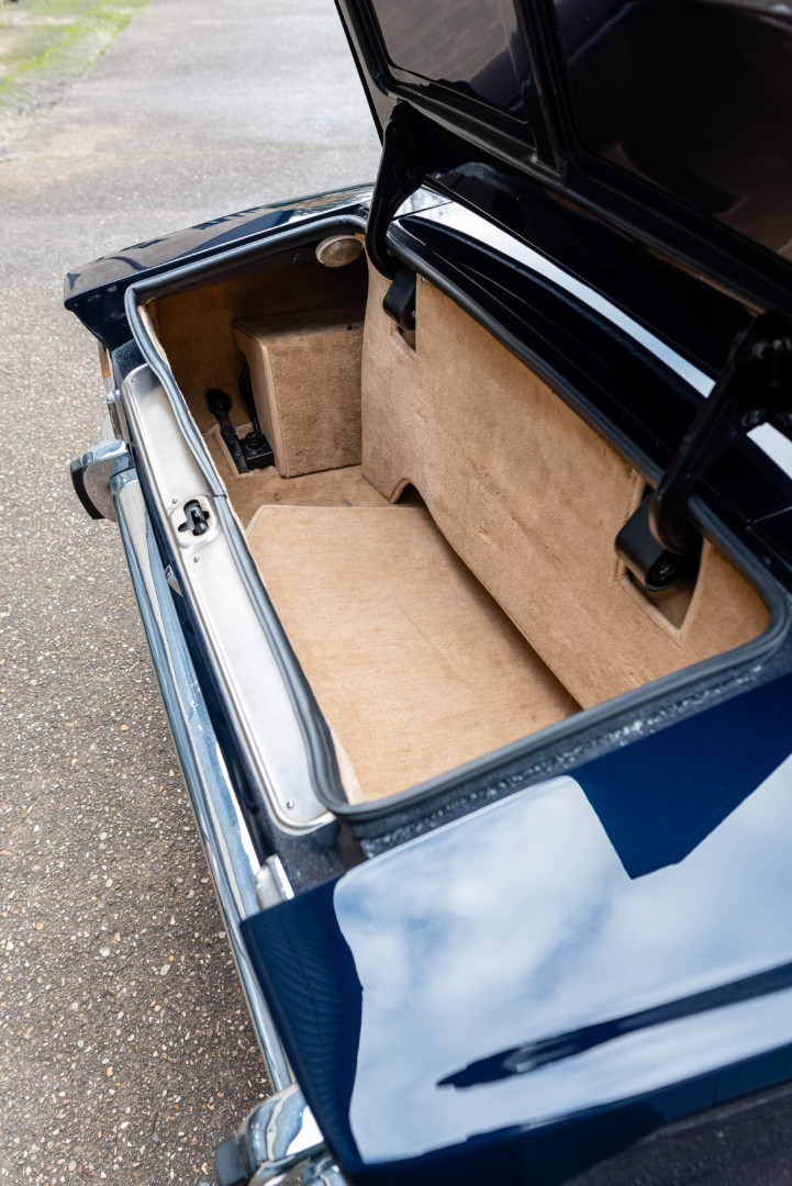 La capote en toile bleu marine, ainsi que l’intérieur de capote en mohair beige, ont également été refaits à la même période.