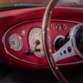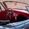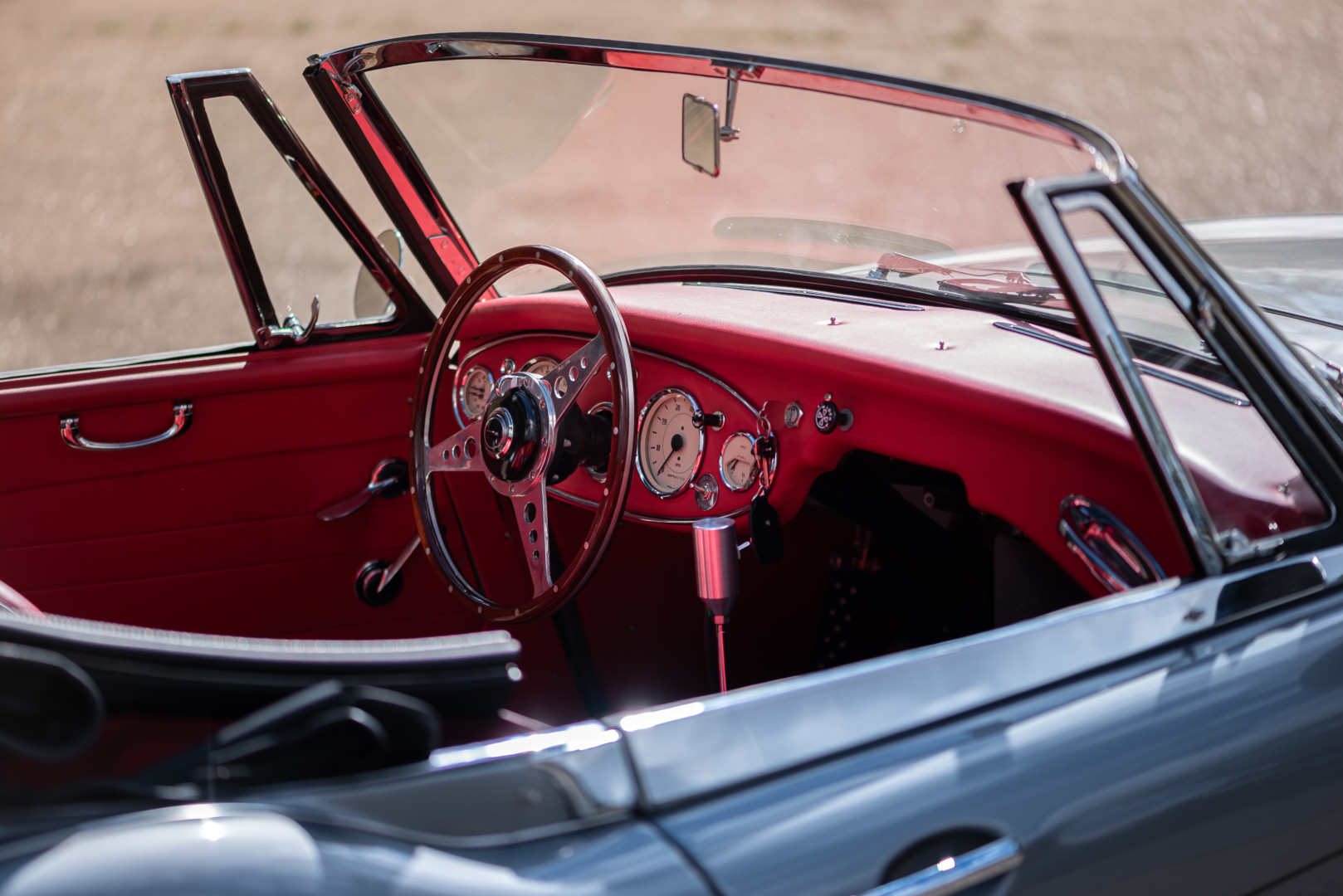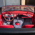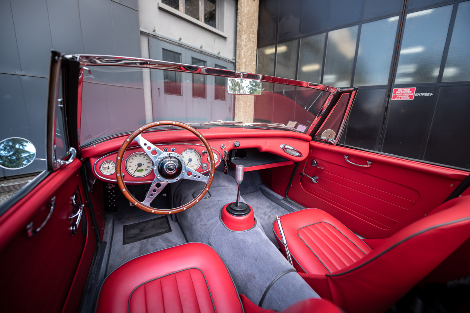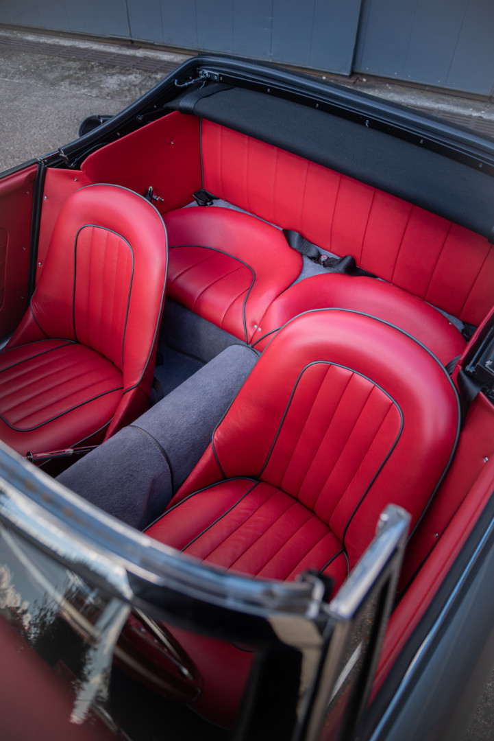 La sellerie en cuir rouge sort de restauration, ainsi que son capotage en alpagua noir.