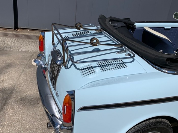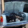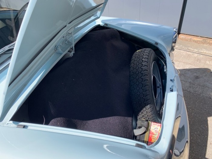Sa sellerie en cuir bleu et beige est en excellant état, les moquettes sont propres ainsi que les panneaux de portes. Les sièges ont étés refais en 2012 et la capote en 2013. Sa capote est toujours en superbe état.