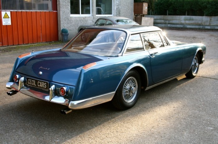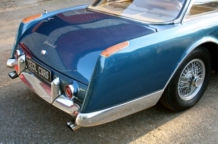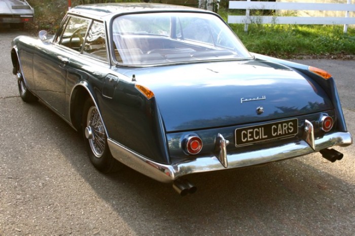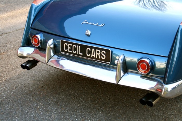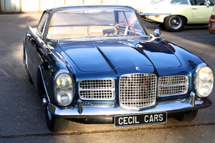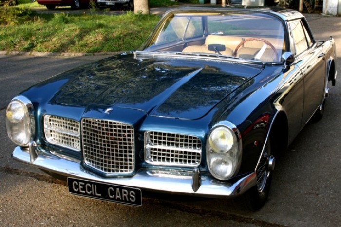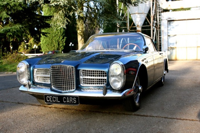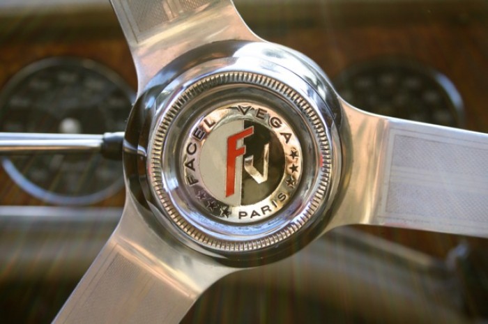 La Facel II se distingue par ses projecteurs avant profilés Marchal Mégalux et ses feux arrière circulaires supplémentaires. Le moteur V8 développe 390 chevaux réels pour une vitesse maximale de 245 km/h.