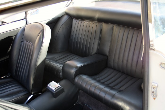 Elle possède une excellente carrosserie avec ses cuirs noires en excellent état et des moquettes neuves sur mesure. Elle est équipée d'un rare toit ouvrant.