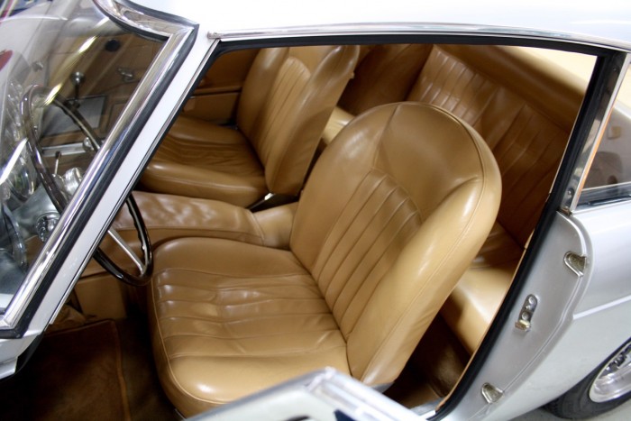 Elle possède une excellente carrosserie très saine. Sa sellerie en cuir beige probablement d'origine est en très belle état.