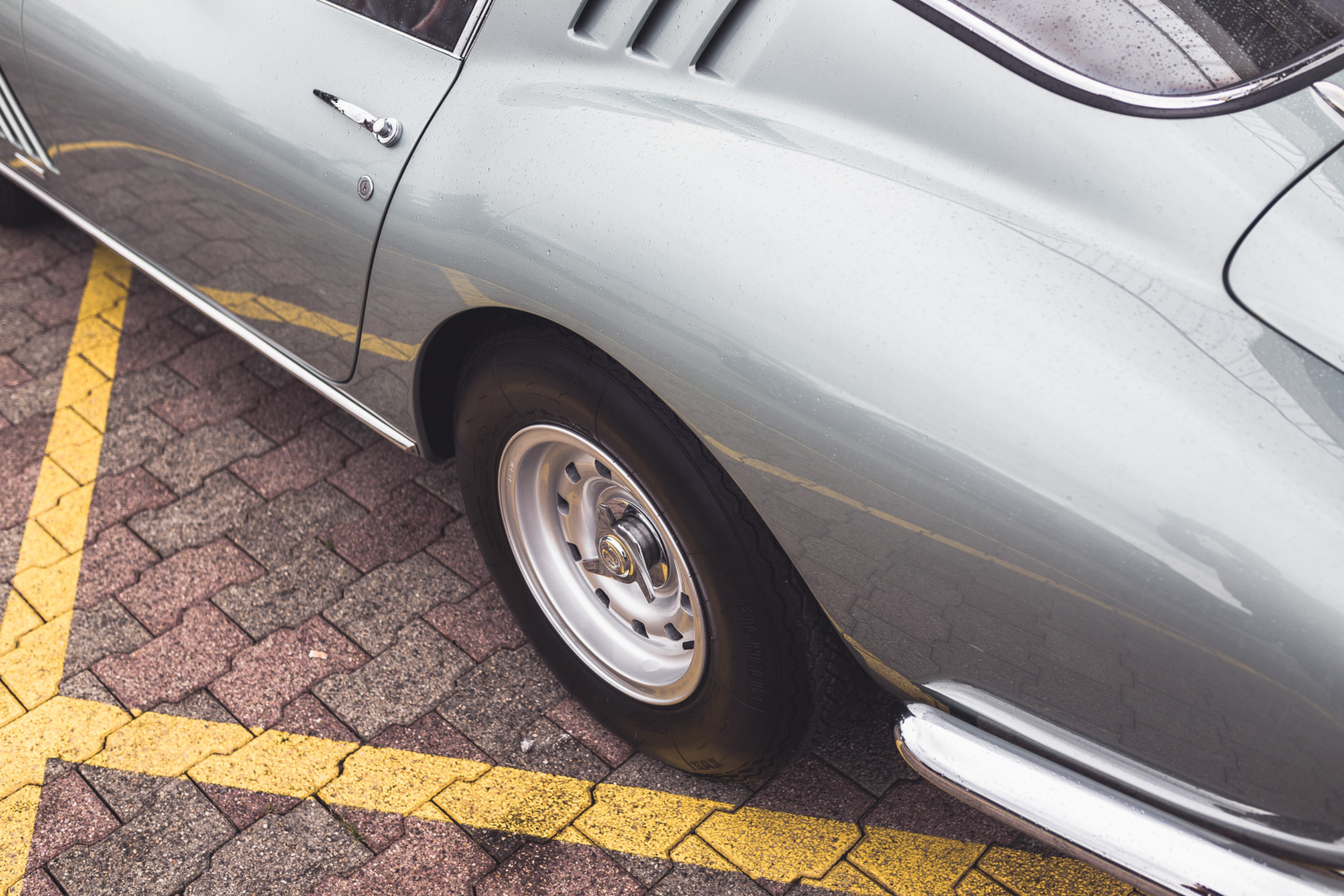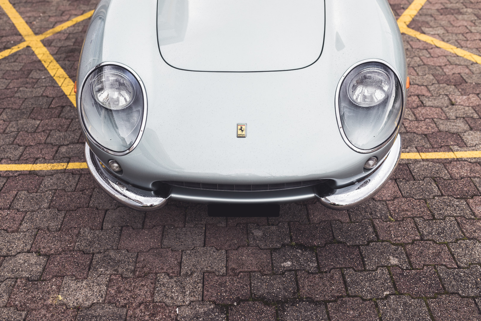 Le châssis de la GTB a un empattement raccourci à 2400mm. Le moteurs V12 avec un arbre à cames en tête par rangée pour une cylindrée de 3,3 litres est équipée de trois carburateurs Weber et deux distributeurs, pour développer les 280 chevaux.
