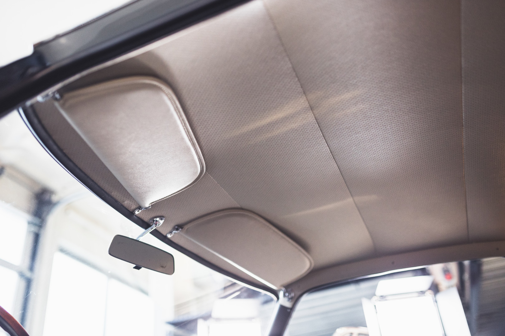 Sa sellerie en cuir Nero est en excellent état. Les moquettes sont impeccables ainsi que les panneaux de portes et le ciel de tit. Le tableau de bord fut lui refait en cuir sans bois.