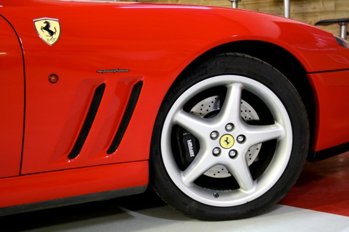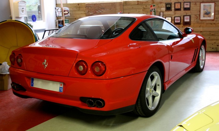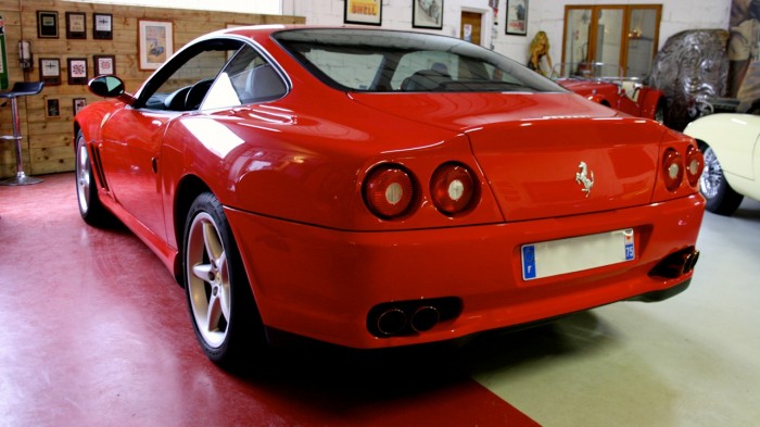 La Ferrari 550 Maranello a été produite de 1996 à 2002 avec un total de 3 083 exemplaires. Le moteur, placé en position longitudinale avant, est un V12 de 5,5L qui développe près de 500 chevaux (vitesse maximale de 312 km/h). Elle a une répartition du poids très équilibrée de 50/50 avant/arrière.