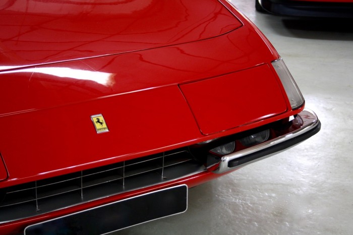Elle est dévoilée au Mondial de l'automobile de Paris 1968. Succédant à la 275 GTB/4, la Daytona est, comme sa devancière, une voiture de conception classique, c'est-à-dire une berlinette à moteur avant, conformément à la vision qu'a Enzo Ferrari d'une automobile de sport.