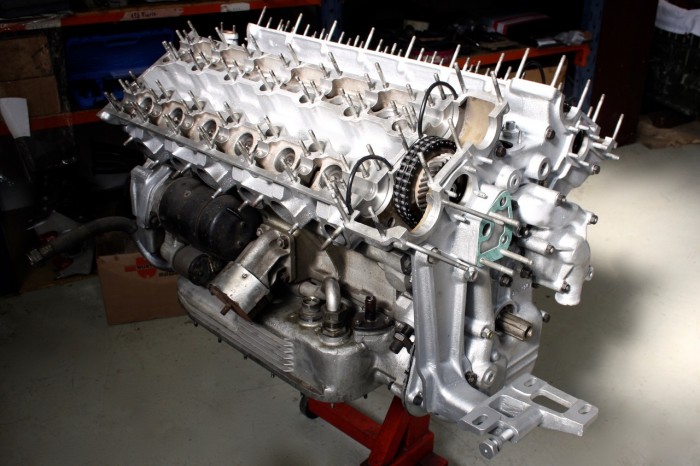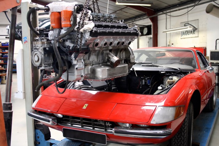 Le moteur est un V12 de 4,4 litres à quatre arbres à cames en tête et carter sec mais à deux soupapes par cylindre, simple allumage et chambre de combustion hémisphériques. Le tout est alimenté par 6 carburateurs Weber double corps de 40mm. L'architecture de transmission est de type transaxle, la boîte de vitesses est donc positionnée sur le pont arrière, ceci afin de garantir une bonne répartition des masses entre les trains avant et arrière. 1.230 exemplaires seulement produit de 1968 à 1973.