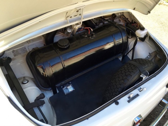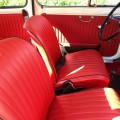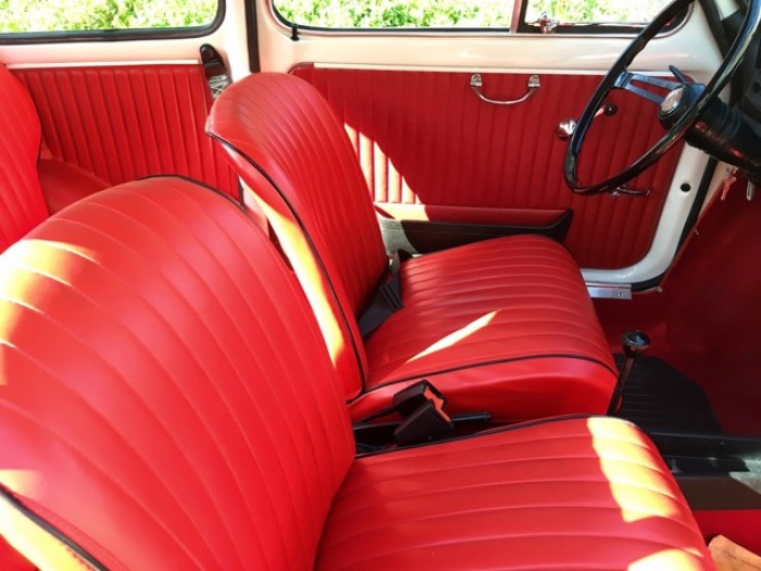 Elle possède une excellente carrosserie très saine. Sa sellerie est en simili cuir rouge accompagnée de moquette rouge, le tout en parfait état.