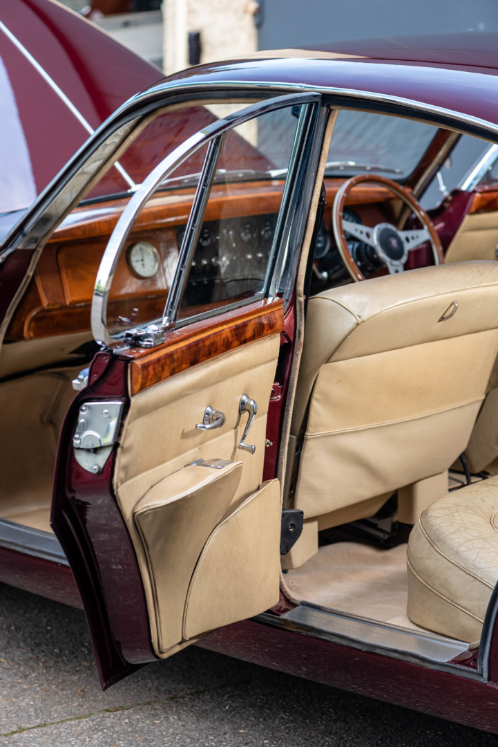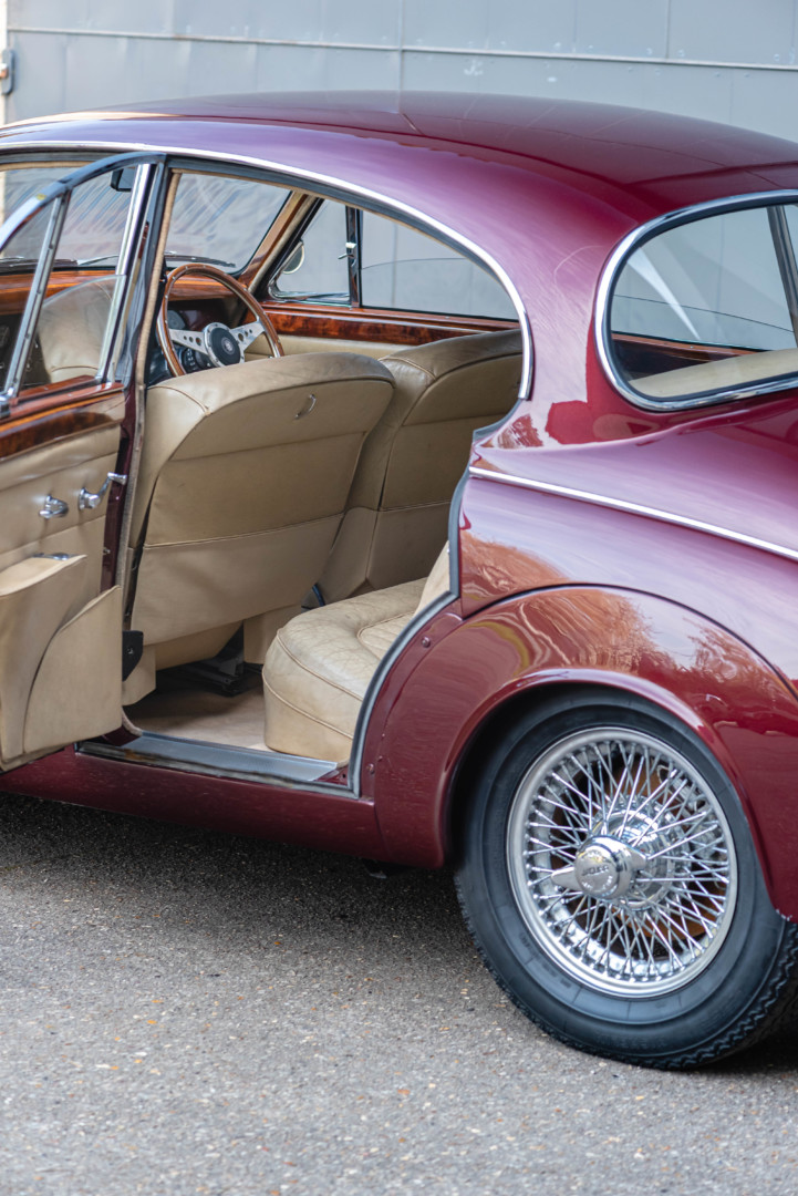 La Jaguar MKII 3.4L se distingue également par son comportement routier avancé, grâce notamment à ses freins à disque sur les quatre roues, une technologie encore rare à l’époque, qui lui confère un freinage puissant et endurant.