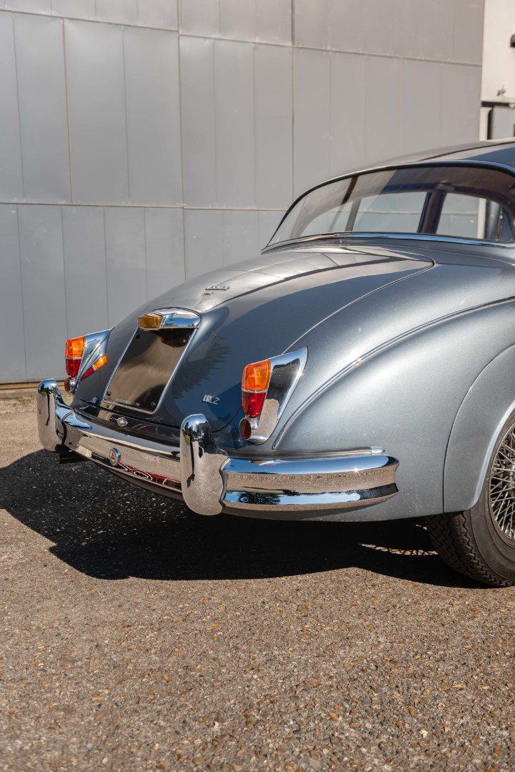 Jaguar présenta la MK II au salon de Londres en octobre 1959, avec trois motorisations : 2L4, 3L4 et la dernière évolution en 3L8. Cette dernière devint rapidement la référence incontournable pour les “rallymen” en quête d’une voiture sportive. Capable d’atteindre 205 km/h, cette nouvelle Jaguar offrait surtout un excellent freinage grâce à ses quatre freins à disques assistés, signalés par un badge sur le pare-choc arrière. Entre 1959 et 1964, la Jaguar MK II domina la compétition dans la catégorie tourisme, s’imposant comme une voiture imbattable.