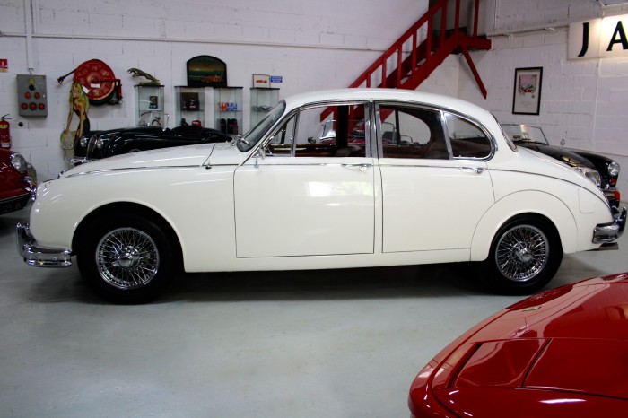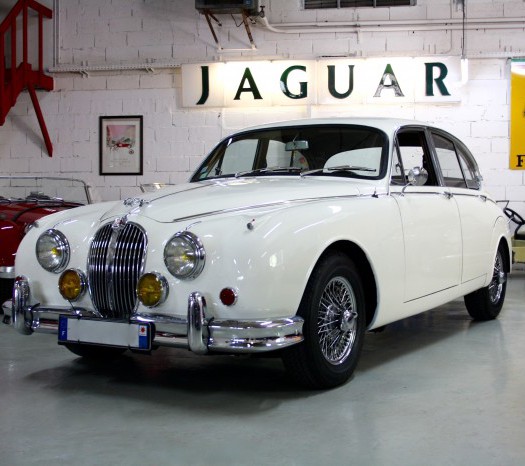 La Jaguar MK II fut présentée au salon de Londres en octobre 1959 en trois cylindrées : 2L4, 3L4 et la dernière évolution du moteur en 3L8. Cette dernière sera pour les "rallymen" la référence incontournable en matière de voiture sportive. Cette nouvelle Jaguar est capable d'atteindre 205 km/h mais surtout elle est dotée de quatre freins à disque assisté qui lui assurent un excellent freinage pour l'époque, signalé sur le pare-choc arrière par un badge. Entre 1959 et 1964 la Jaguar MK II devint imbattable en compétition dans la catégorie tourisme.