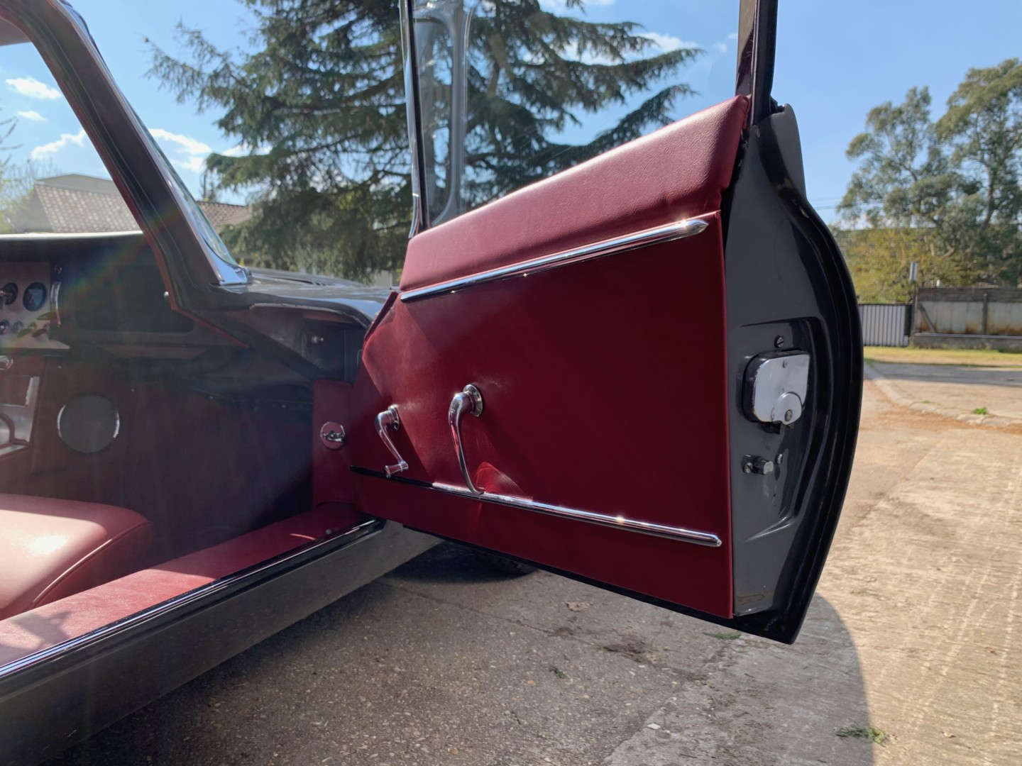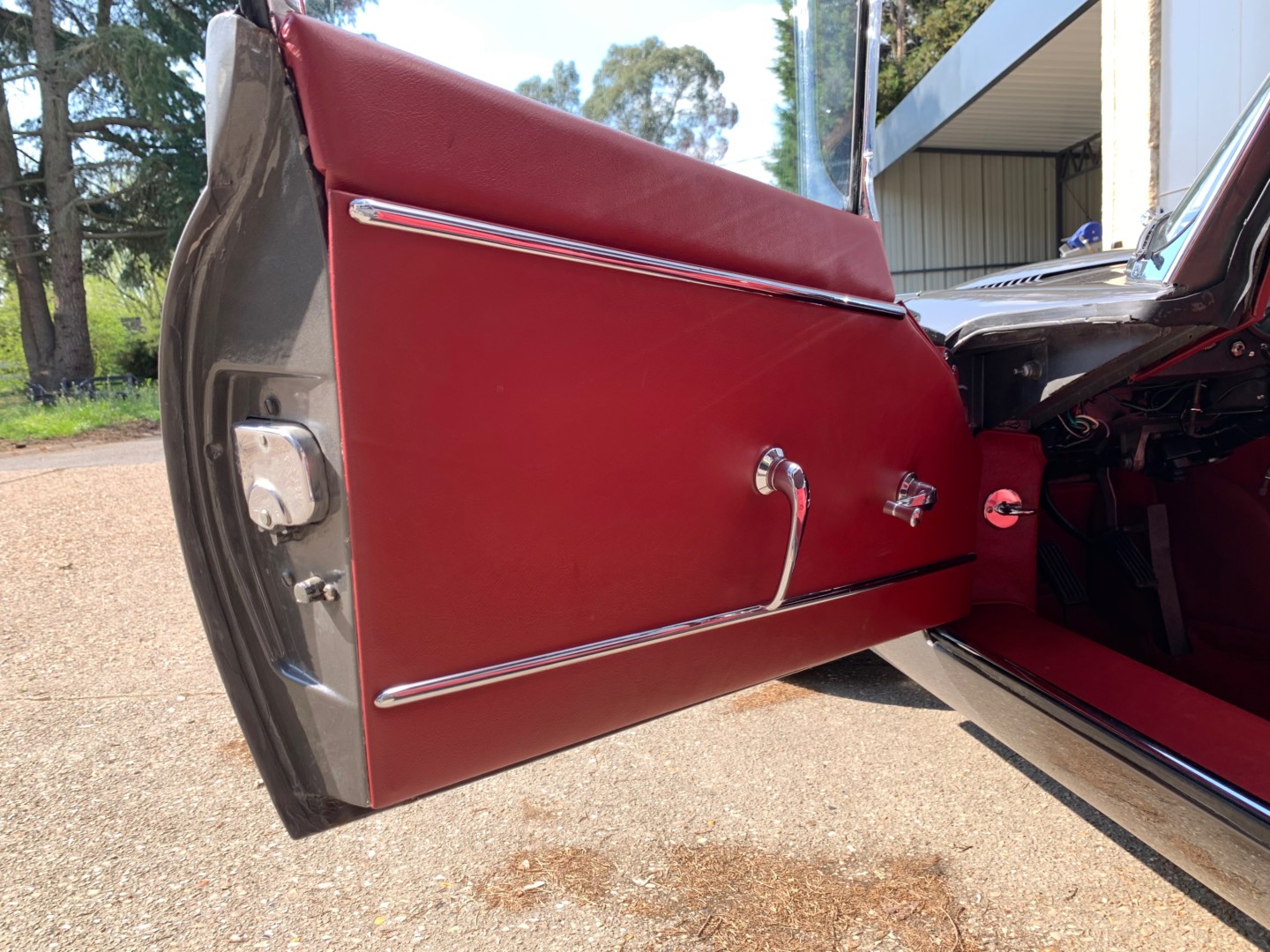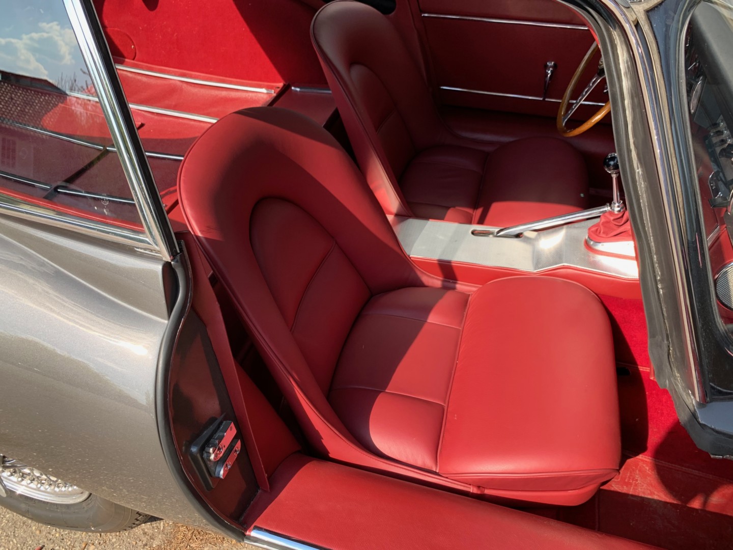 Sellerie restaurée intégralement dans nos ateliers en respectant la couleur d'origine. Les sièges en cuir "pleine fleur", taillés sur mesure. Les panneaux de portes ainsi que tous les éléments périphériques sont en simili pour respecter la fabrication d'origine. L'isolation et les moquettes sont neuves.