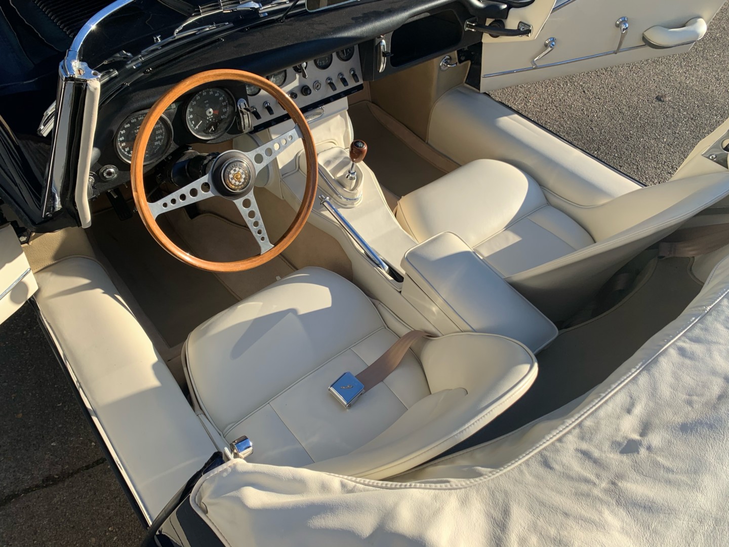 La sellerie fut restaurée intégralement dans nos ateliers. Les sièges, les panneaux de portes ainsi que tous les éléments périphériques son en cuir pleine fleur, taillé sur mesure. L'isolation et les moquettes sont neuves.