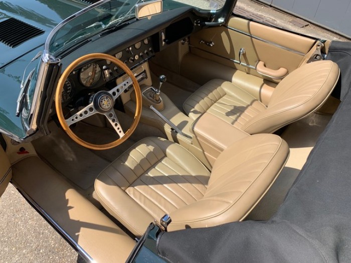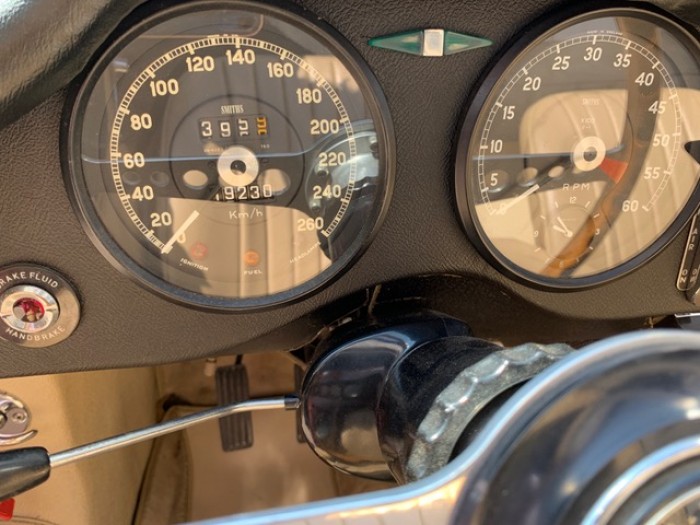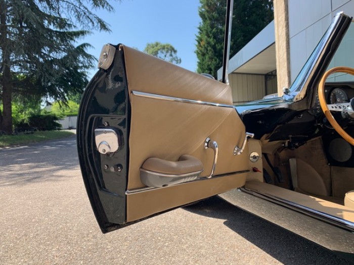 La sellerie fut restaurée intégralement avant 2000. Les sièges son en cuir beige, les panneaux de portes, le coffre ainsi que tous les éléments périphériques sont en parfait état.