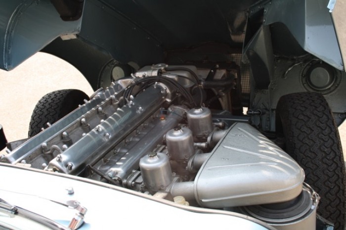 Quatre roues indépendantes à rayons et freins à disques, un volant bois et un tableau de bord tout en aluminium, les sièges baquets et les phares carénés, les 3 carburateurs SU chromés en ligne et les 265 chevaux du moteur XK... Voilà ce que représente cette nouvelle ligne Jaguar appelée TYPE E.