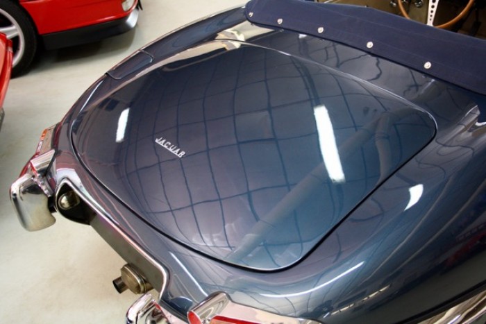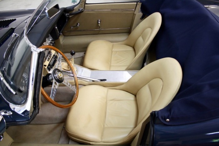 Carrosserie et peinture en excellent état, très belle sellerie en cuirs beige, capote bleu.