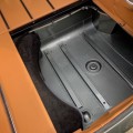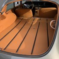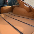 La sellerie fut restaurée intégralement. Les sièges, les panneaux de portes, le coffre ainsi que tous les éléments périphériques son en cuir pleine fleur, taillé sur mesure. L'isolation et les moquettes sont neuves.