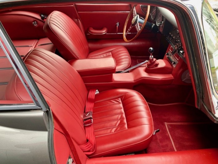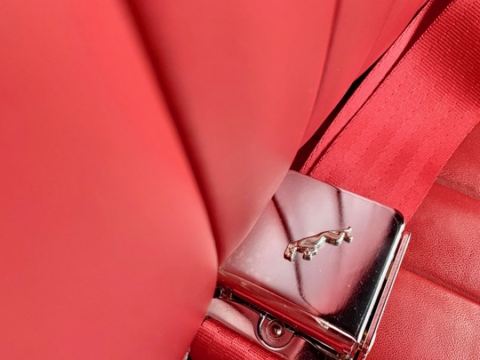 Sa sellerie en cuir rouge est en excellant état. Le pavillon et les moquettes sont propres ainsi que les panneaux de portes.