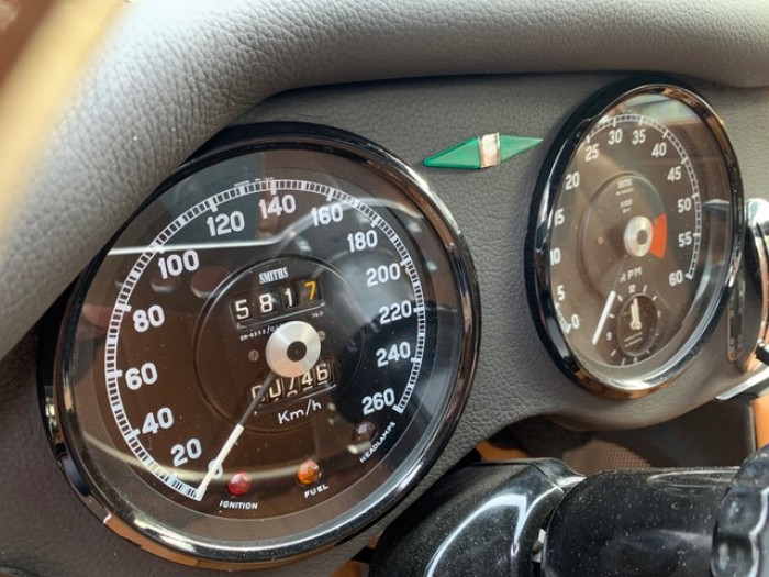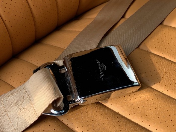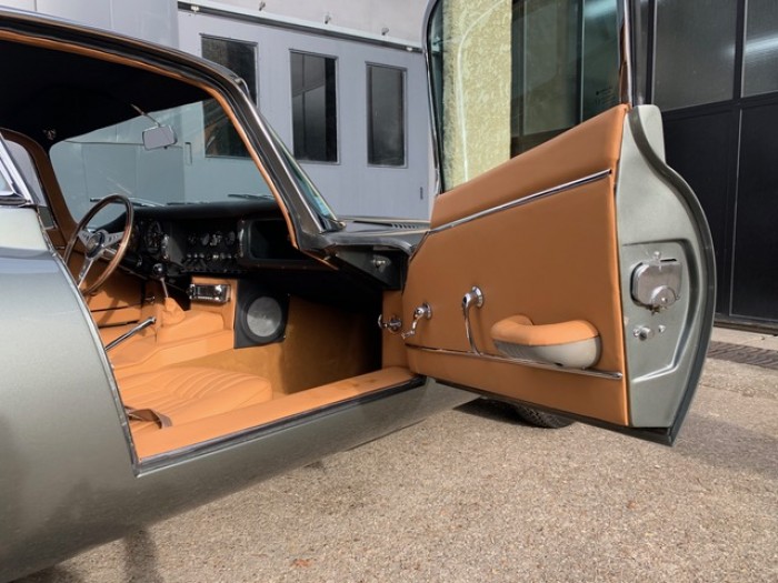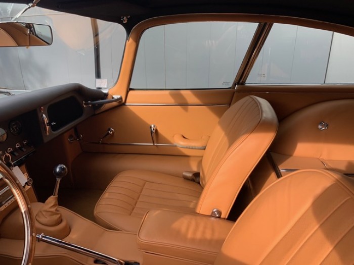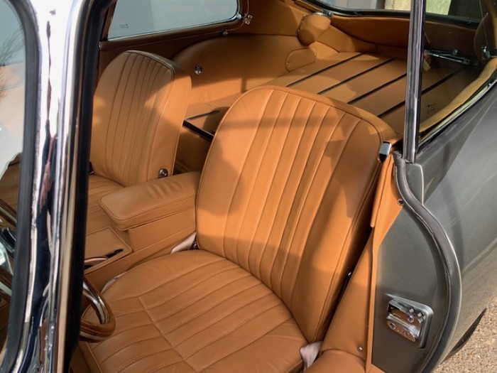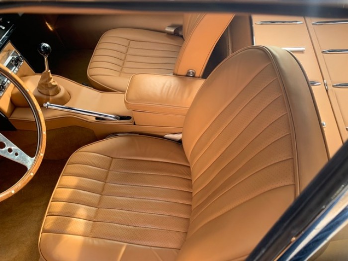 La sellerie fut restaurée intégralement. Les sièges, les panneaux de portes, le coffre ainsi que tous les éléments périphériques son en cuir pleine fleur, taillé sur mesure. L'isolation et les moquettes sont neuves.