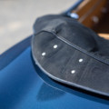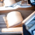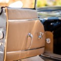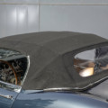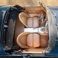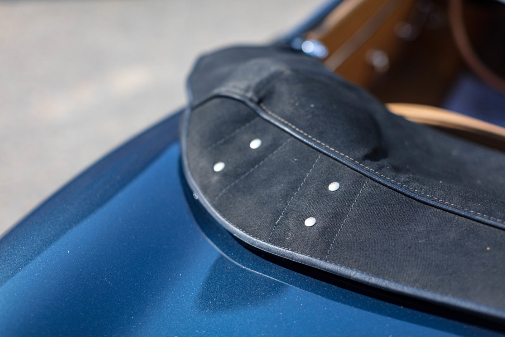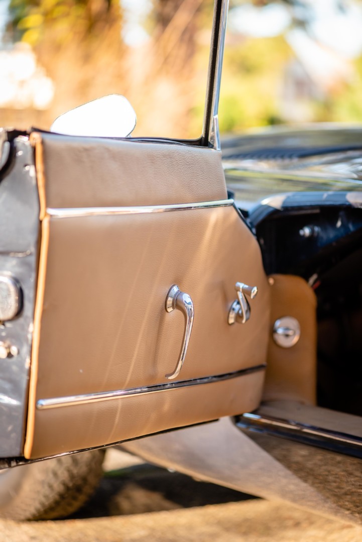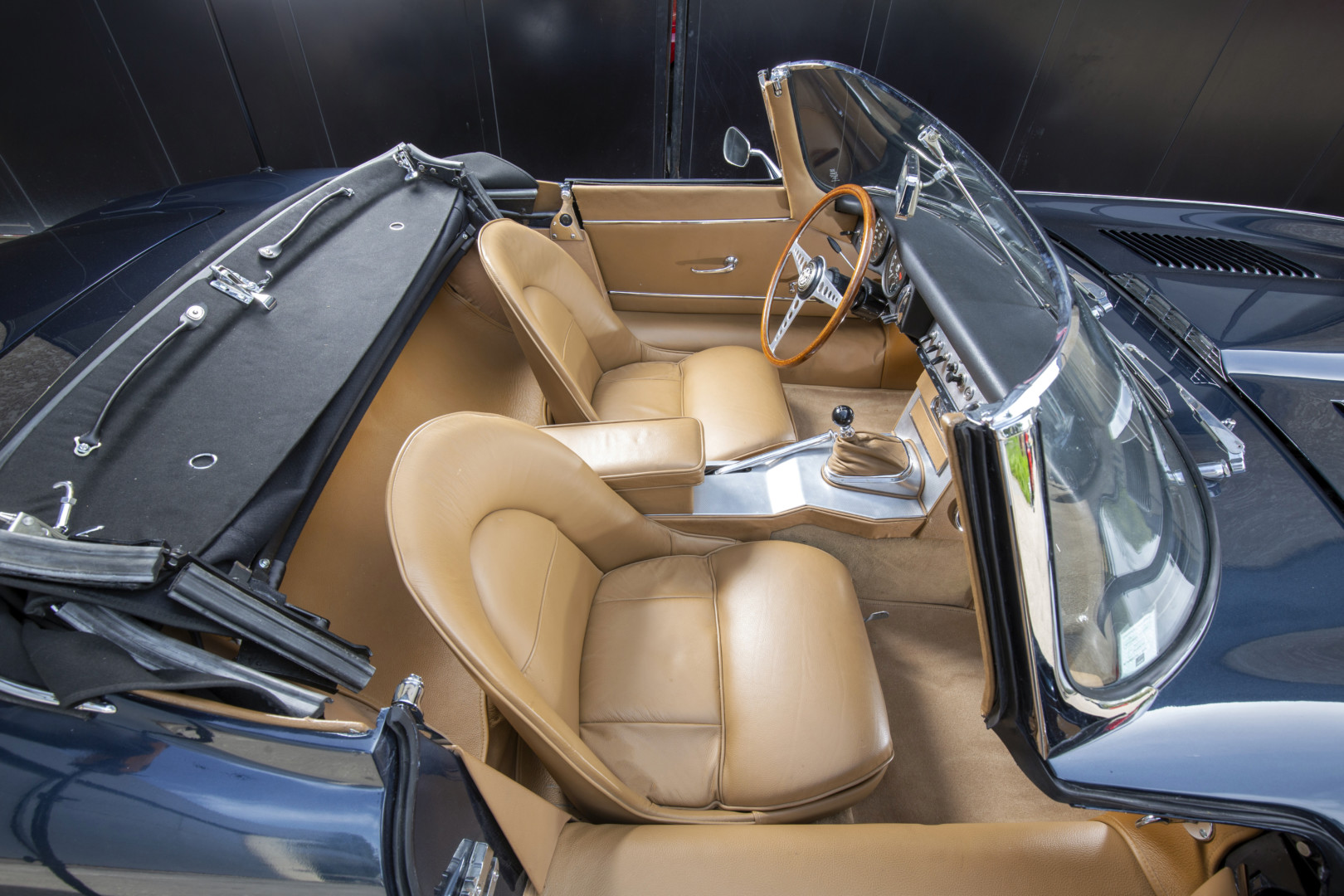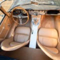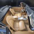 Sa sellerie en cuir beige à une belle patinée. Les moquettes et la capote sont neuves.