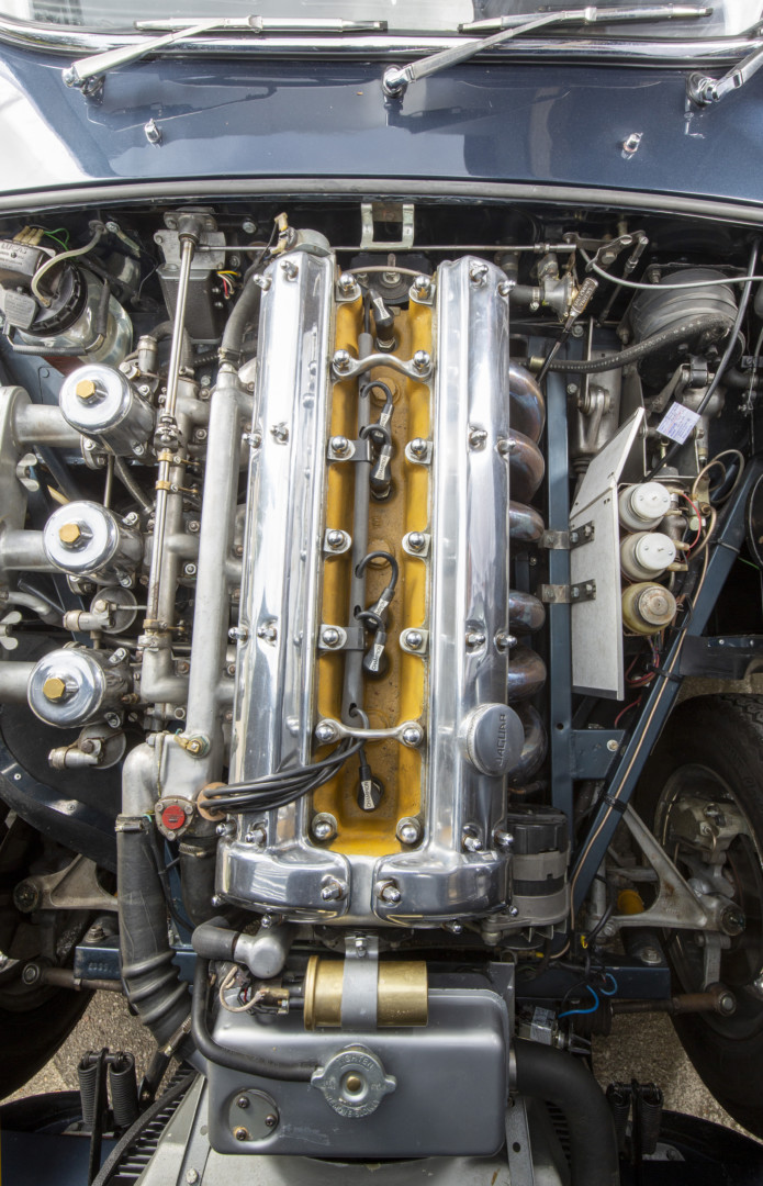 Quatre roues indépendantes à rayons et freins à disques, un volant bois et un tableau de bord tout en aluminium, les sièges-baquets et les phares carénés, les 3 carburateurs SU chromés en ligne et les 265 chevaux du moteur XK... Voilà ce que représente cette nouvelle ligne Jaguar appelée TYPE E.