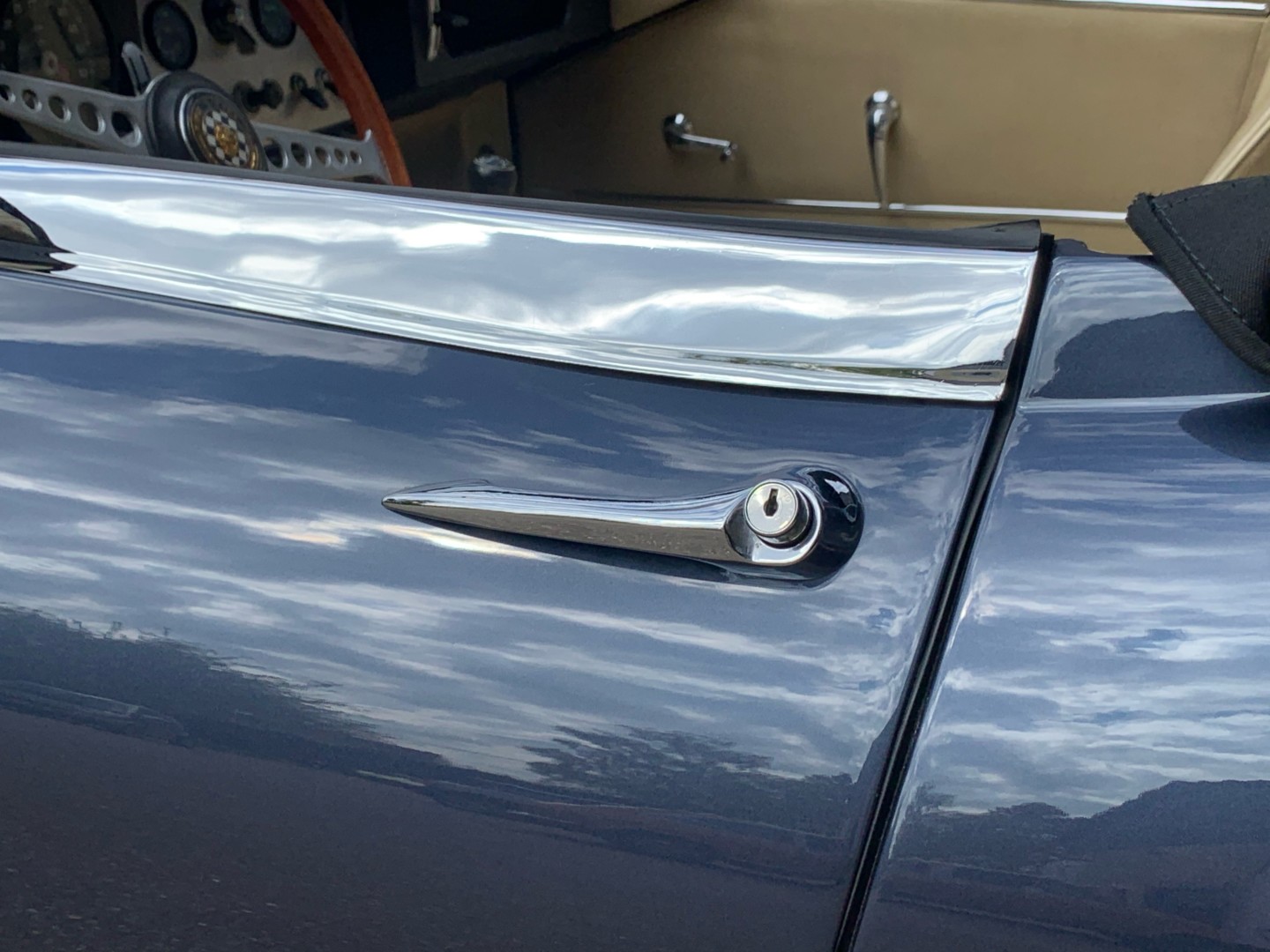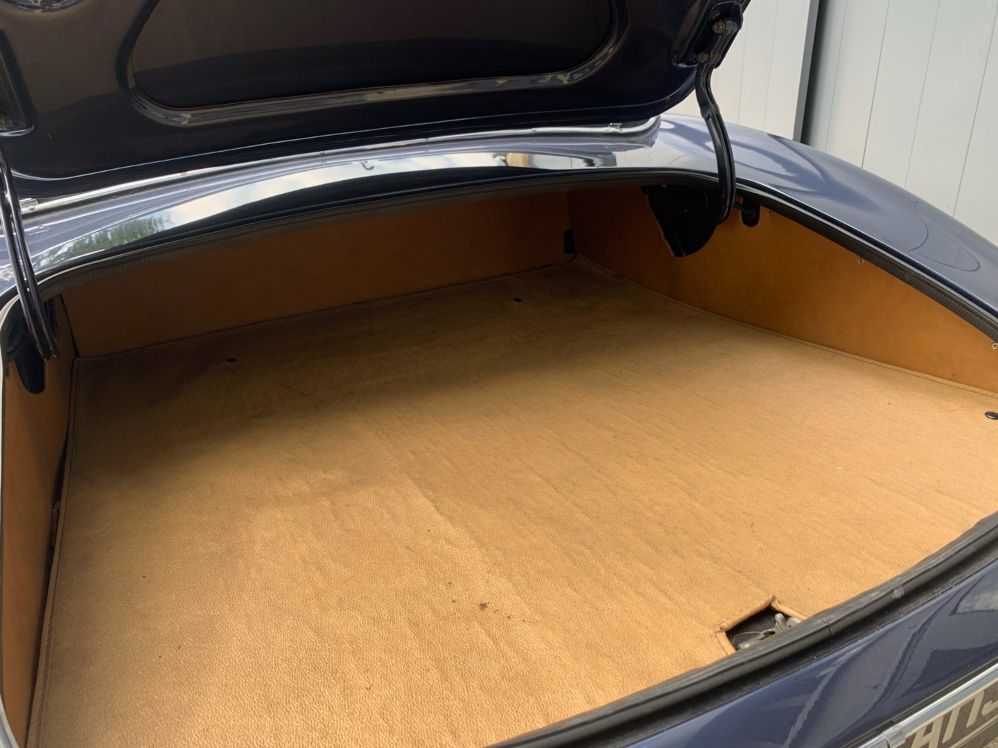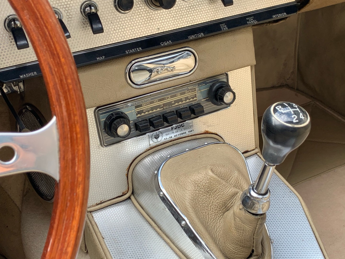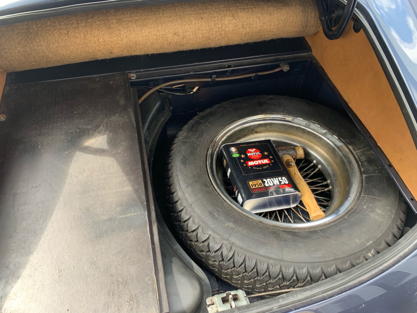 Elle possède encore sa sellerie d'origine beige avec une belle patinée. Les moquettes et la capote sont neuves.