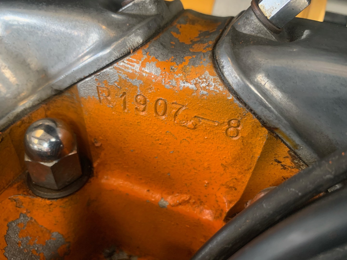 Son moteur 3,8L marche à la perfection. Entretenue régulièrement, il a une excellente pression d'huile. Matching number, sa culasse est encore en peinture d'origine orange "pumpking".