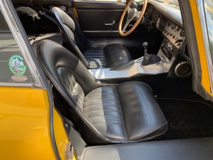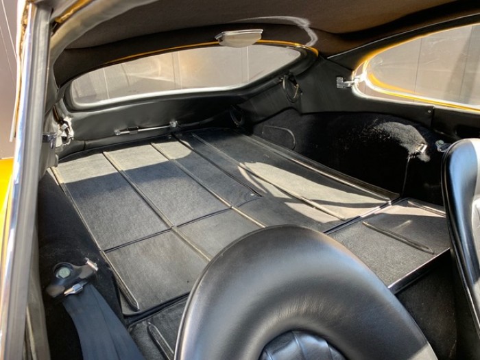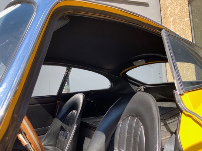 Elle possède une très belle sellerie en cuirs noirs avec une légèrement patinée. Le ciel de toit, les moquettes et les panneaux de portes sont beaux.