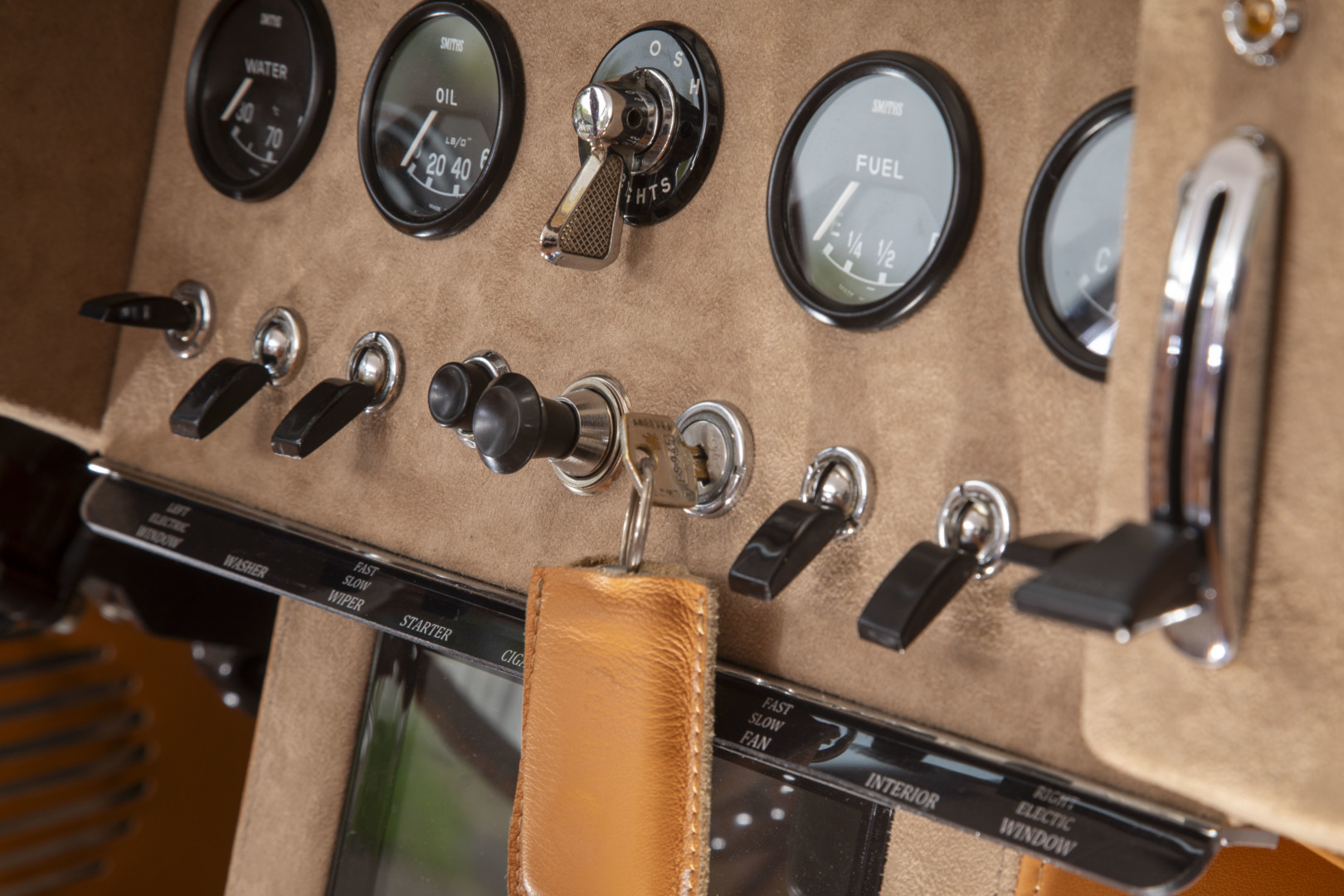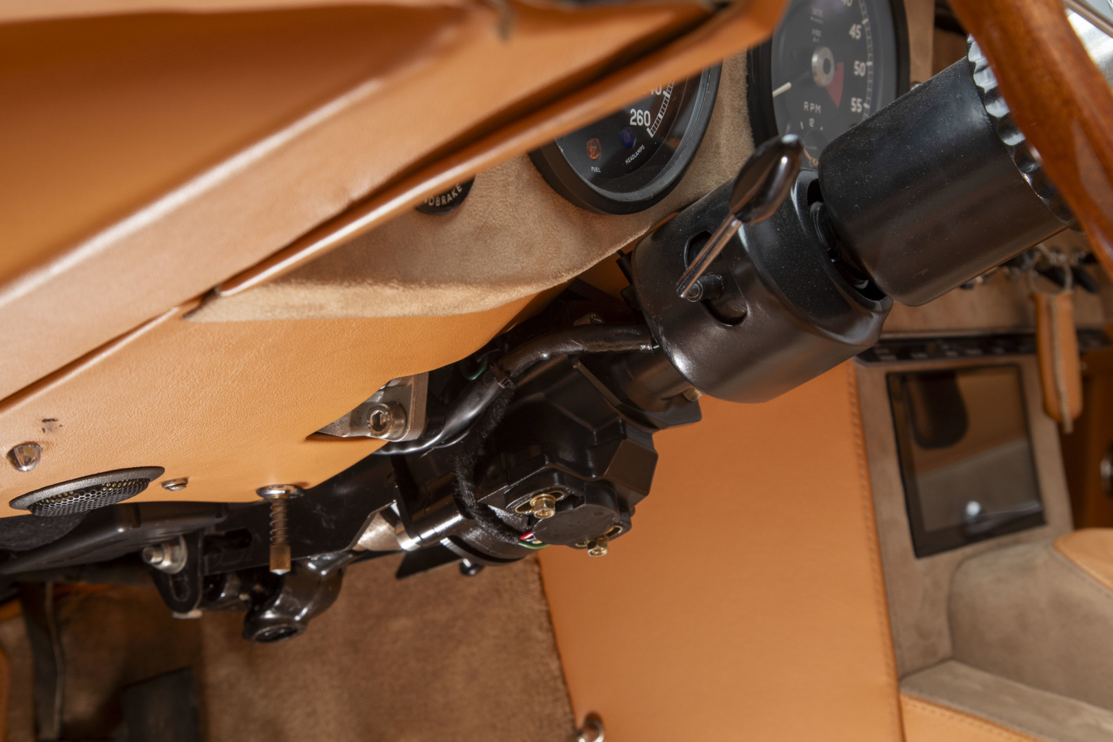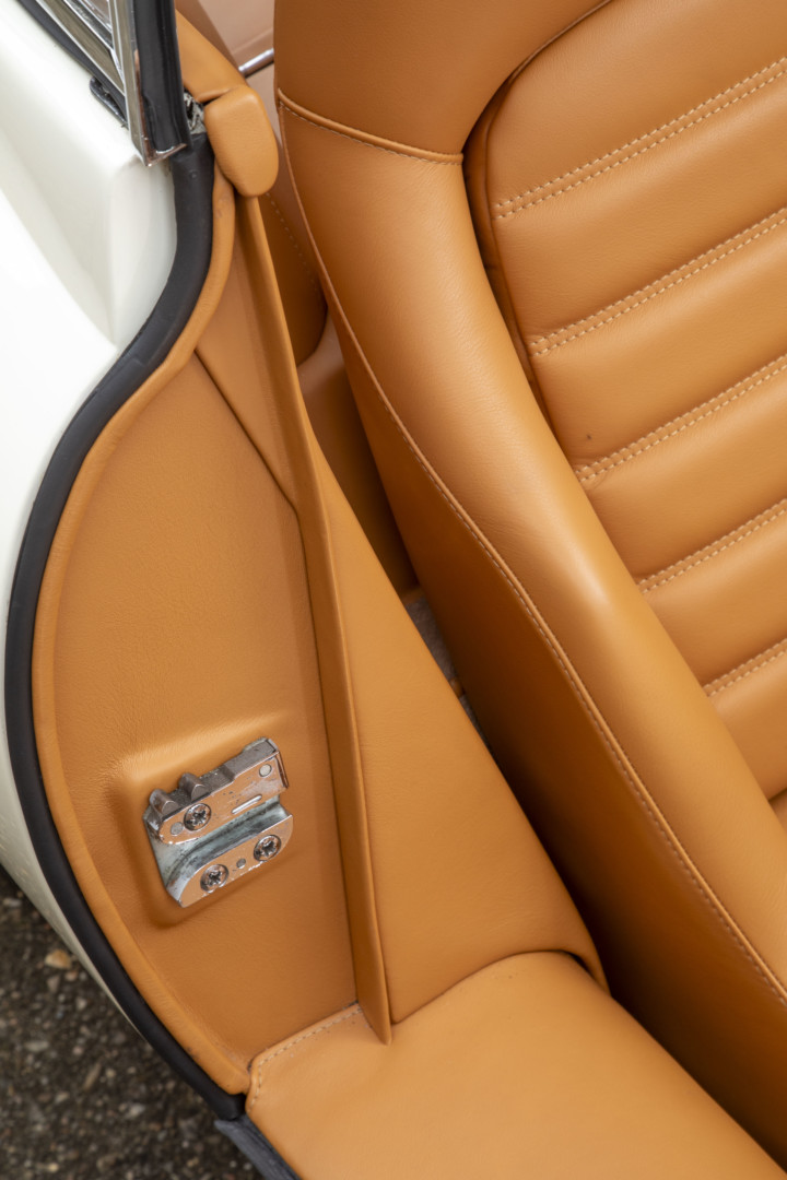 Sa sellerie a été intégralement refaite et repensée dans nos ateliers en 2023. Les cuirs Tan et l'alcantara , soigneusement sélectionnés, sont encore aujourd’hui dans un état remarquable.
