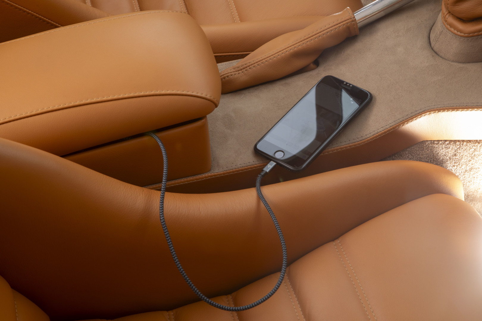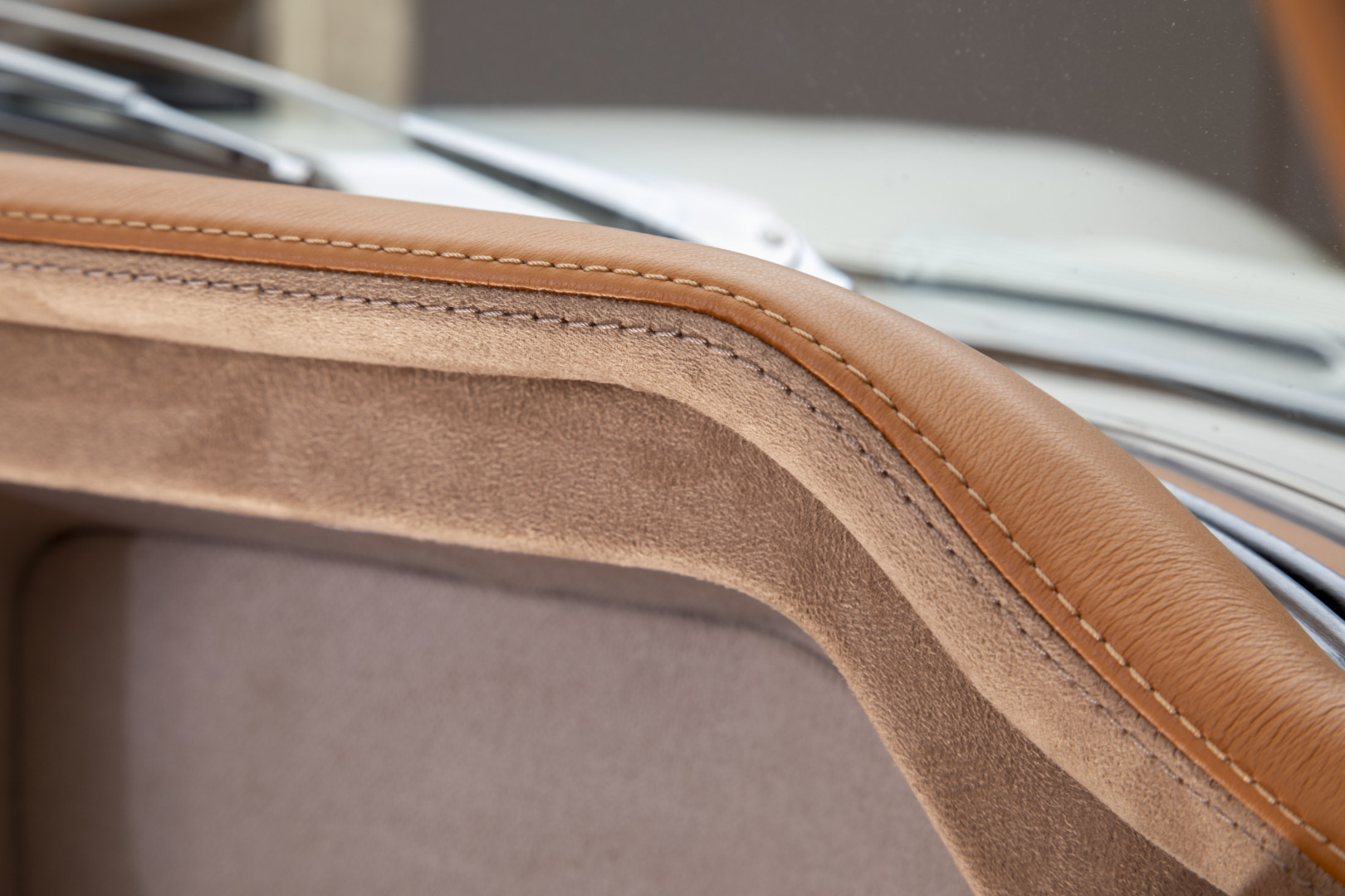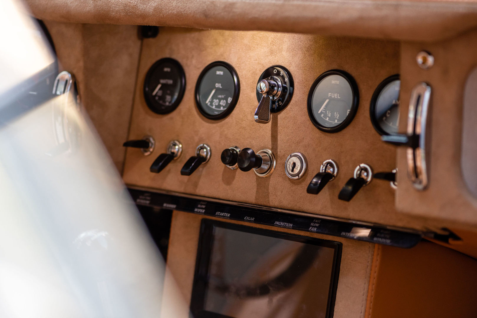 Sa sellerie a été intégralement refaite et repensée dans nos ateliers en 2023. Les cuirs Tan et l'alcantara , soigneusement sélectionnés, sont encore aujourd’hui dans un état remarquable.